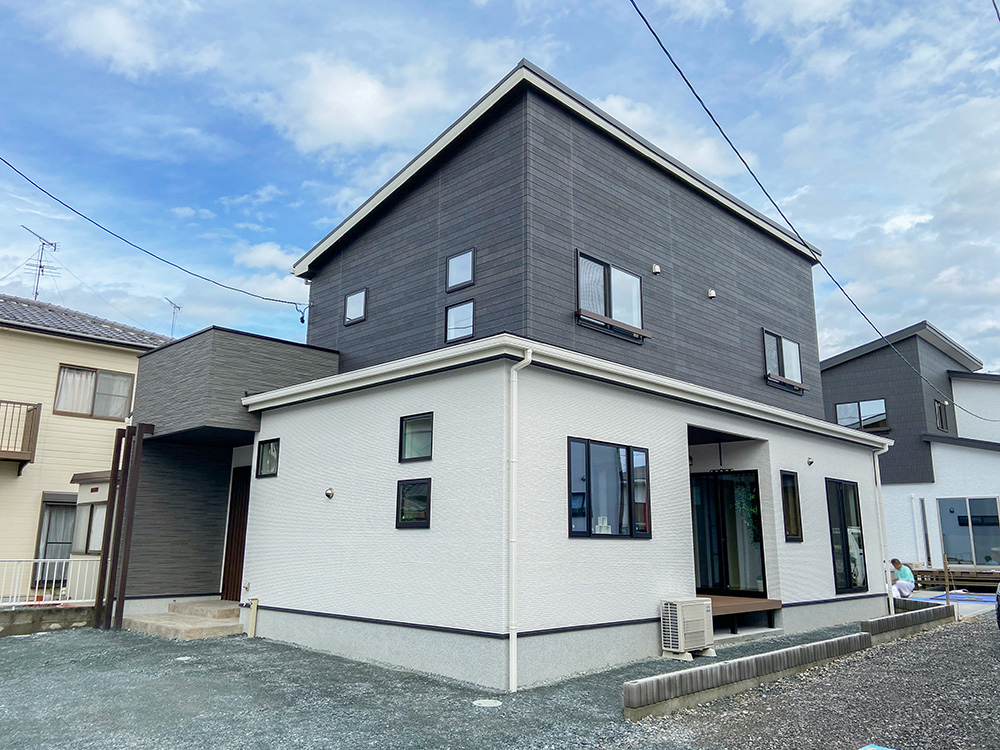 シンプルな配色でありモダンなフォルムの個性派住宅
