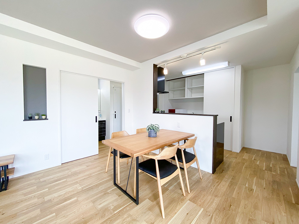 - 動線上にキッチンを配置したため通り抜けられてとても便利です!