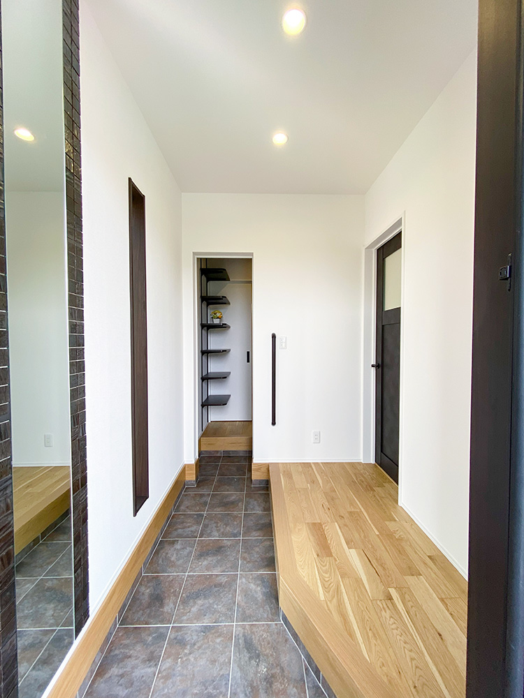 - お出掛け前に全身を見ることができる大きな姿見をエントランスにご用意しました。