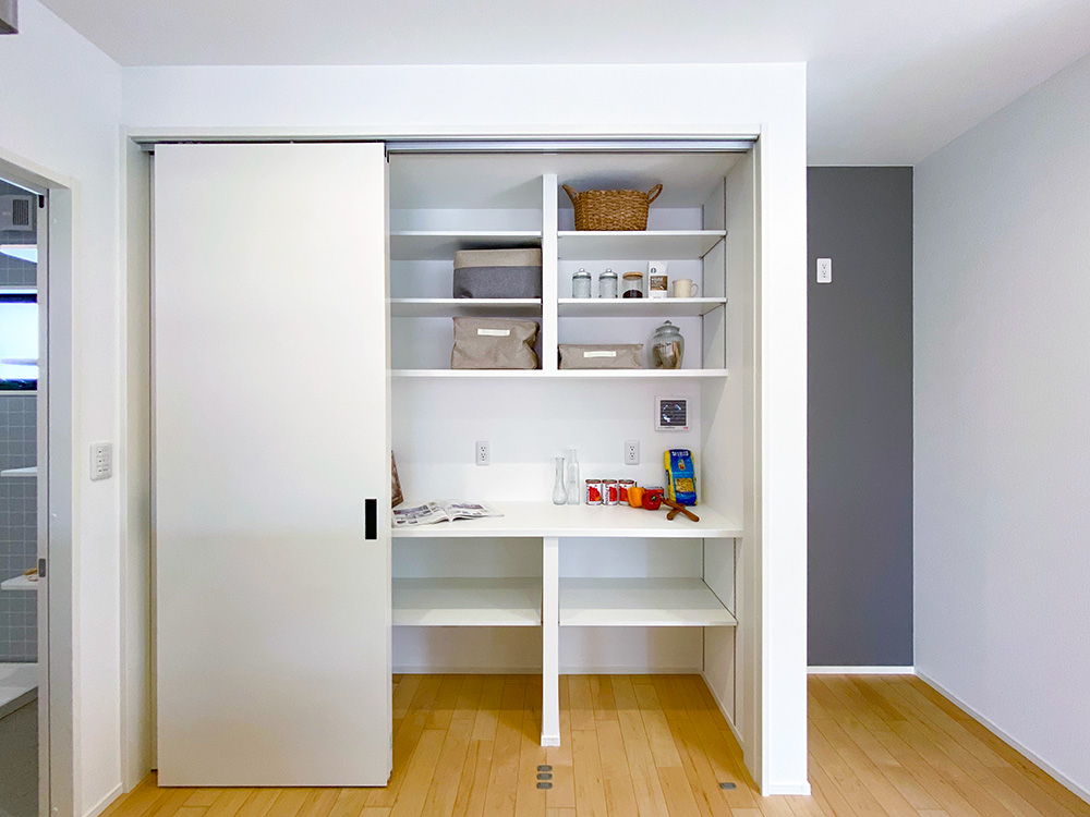 - 調理器具や食器、食材などをまとめて収納できる扉付きの家電ステーションを設置しました。