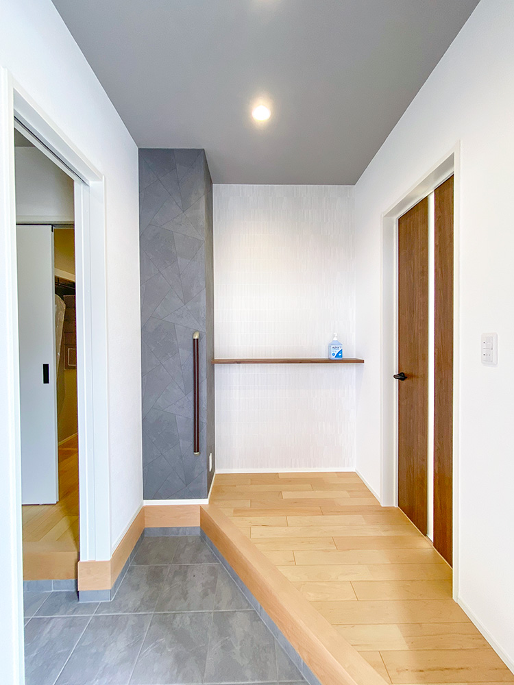 モダンなデザインが光るクロス使いにこだわった住まい!洗濯物を3か所で干せる洗濯にこだわる方必見♪
