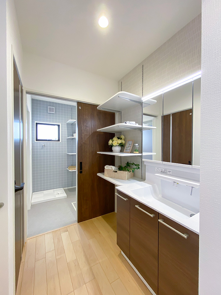 生活動線を考えて洗面台の位置を配慮した3LDKの住まい