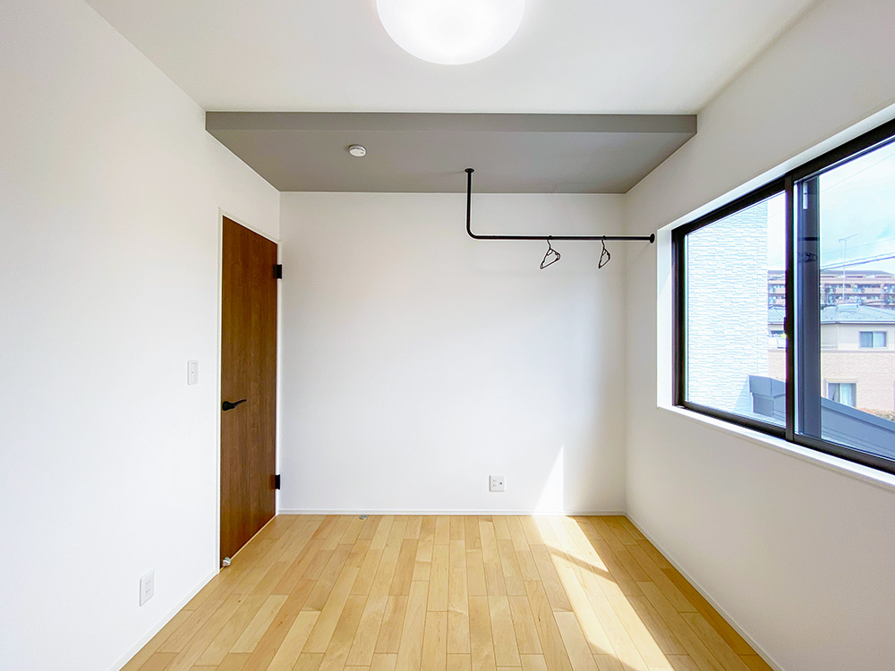 - 収納はハンガーパイプのみというシンプルなお部屋です。より自由に空間を使うことができます。