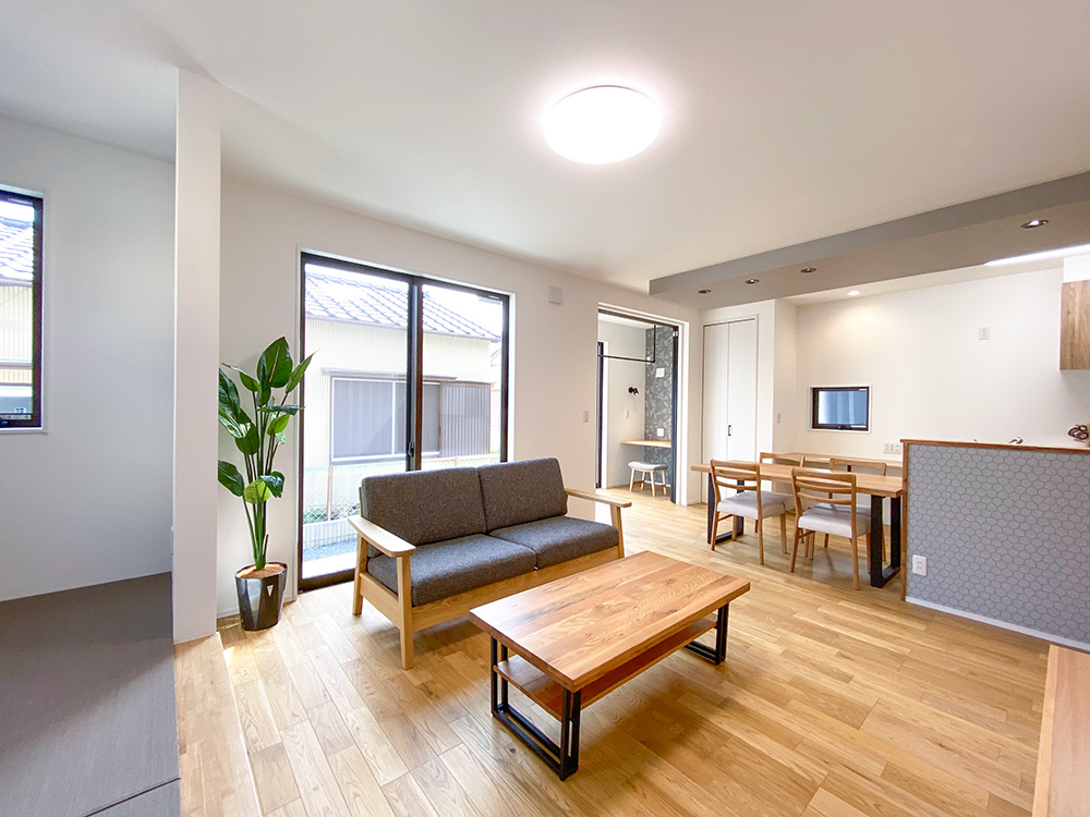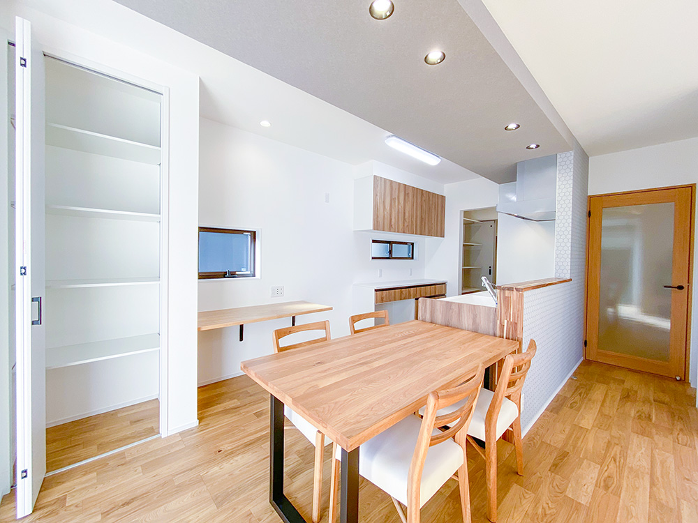 生活動線の短縮が叶う回遊できる間取り!キッチンダイニング横並びで配膳もスムーズ!ストレスなく快適に過ごせるお家