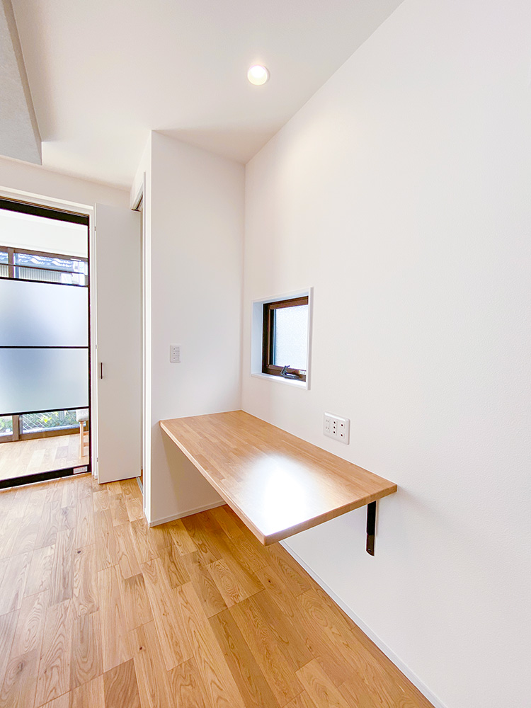 - 献立を考えたり書類をまとめたりするのに便利なカウンターをキッチン横にご用意しました。