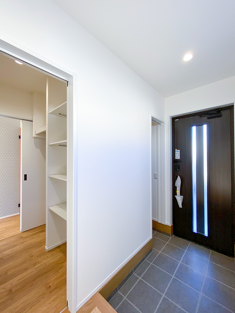 - お子様の靴を履かせたりお出掛けの準備をするのに快適なひろびろ空間に仕上がりました。