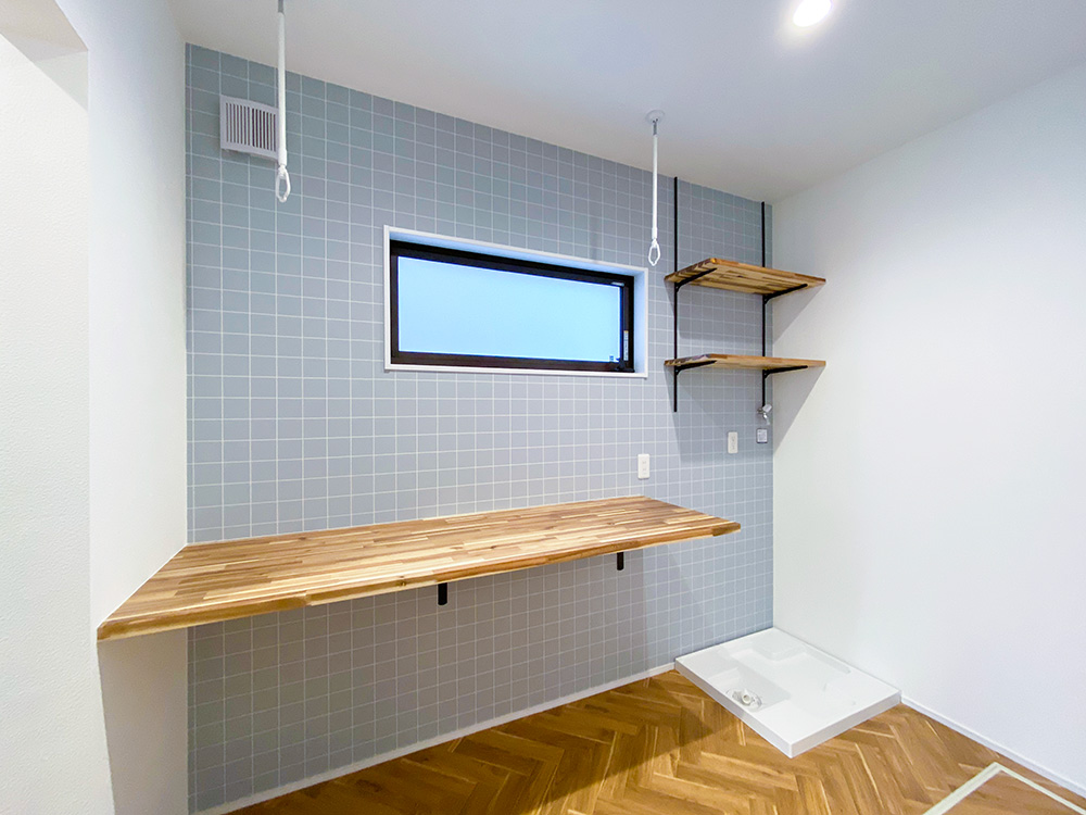 - 3帖あるランドリーはドライルームも兼ねているので、洗濯物を干す畳む収納することができます。