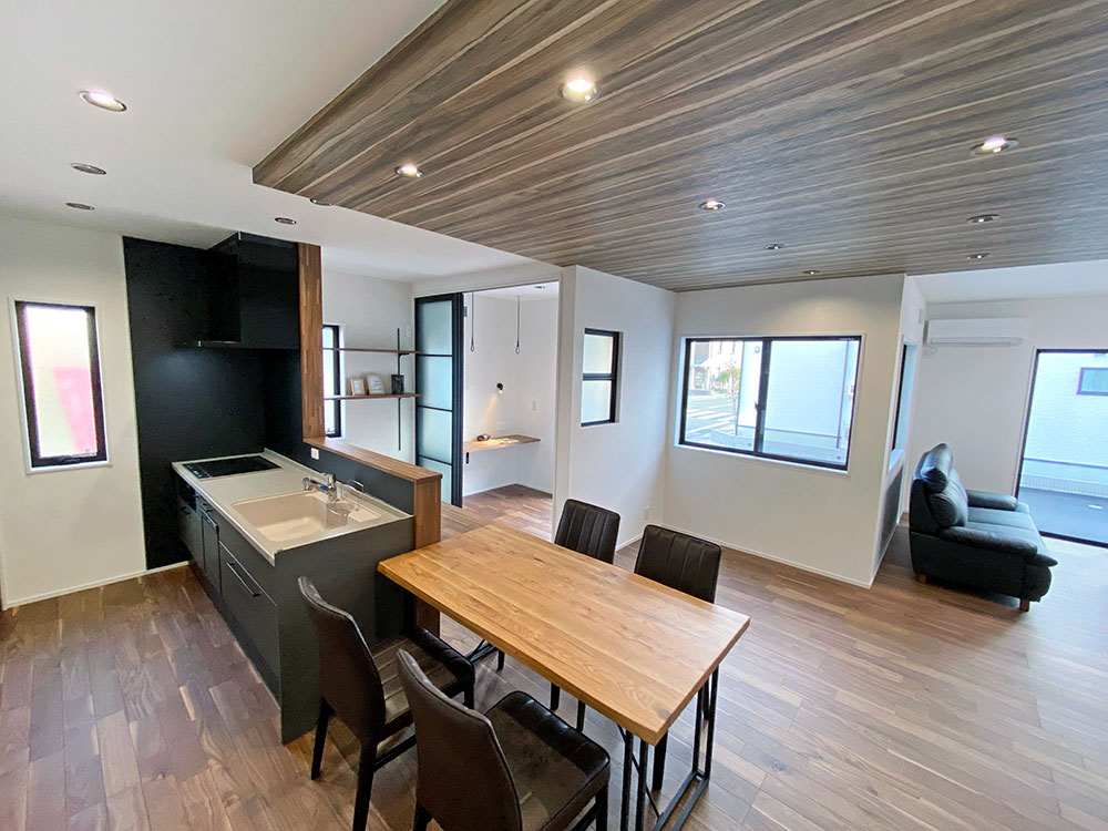 - アクセントにブラック系の木目調を採用したナチュラルモダンなデザイン
