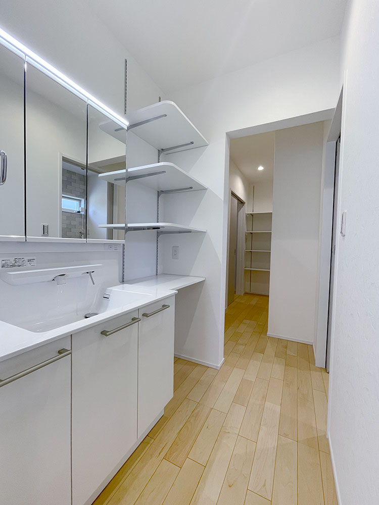 生活動線を考えて洗面台の位置を配慮した3LDKの住まい