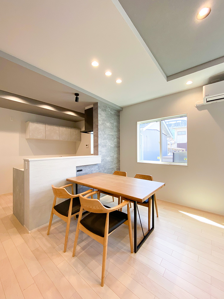 南面から柔らかな光が差し込む癒しのダイニング空間となっています。