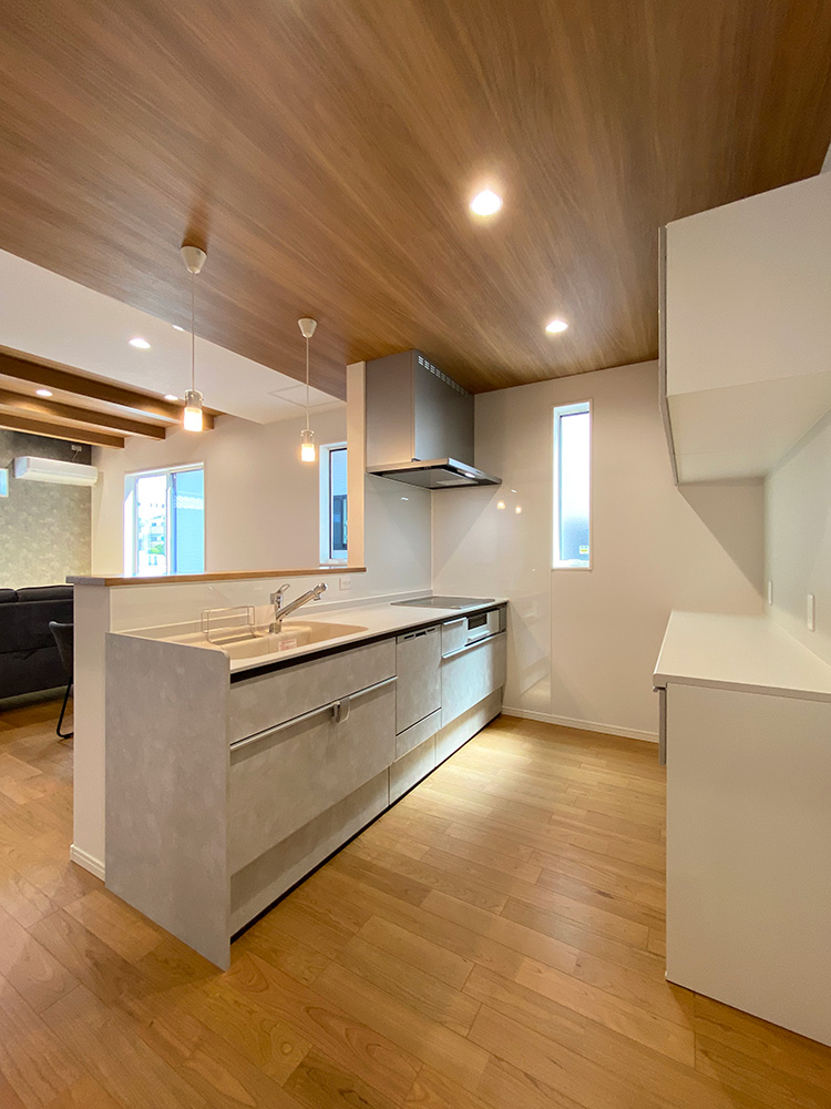 生活動線の短縮が叶う回遊できる間取り!キッチンダイニング横並びで配膳もスムーズ!ストレスなく快適に過ごせるお家