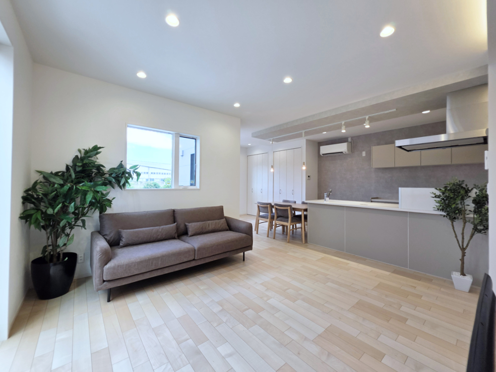 大きな窓から自然光がたっぷりと差し込み、室内全体が心地よい雰囲気に包まれます。