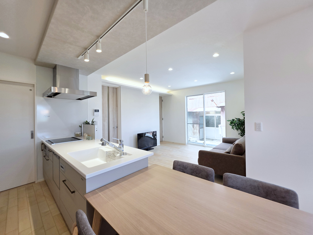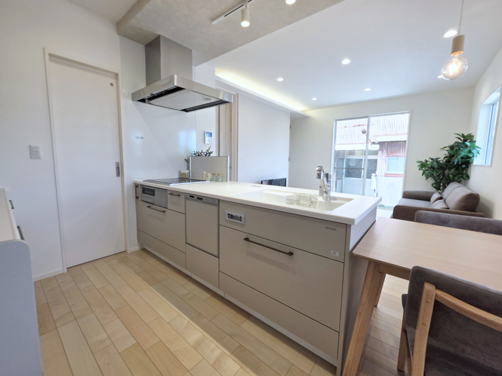 キッチンとダイニングが一直線に繋がることで、配膳や片付けもスムーズ。