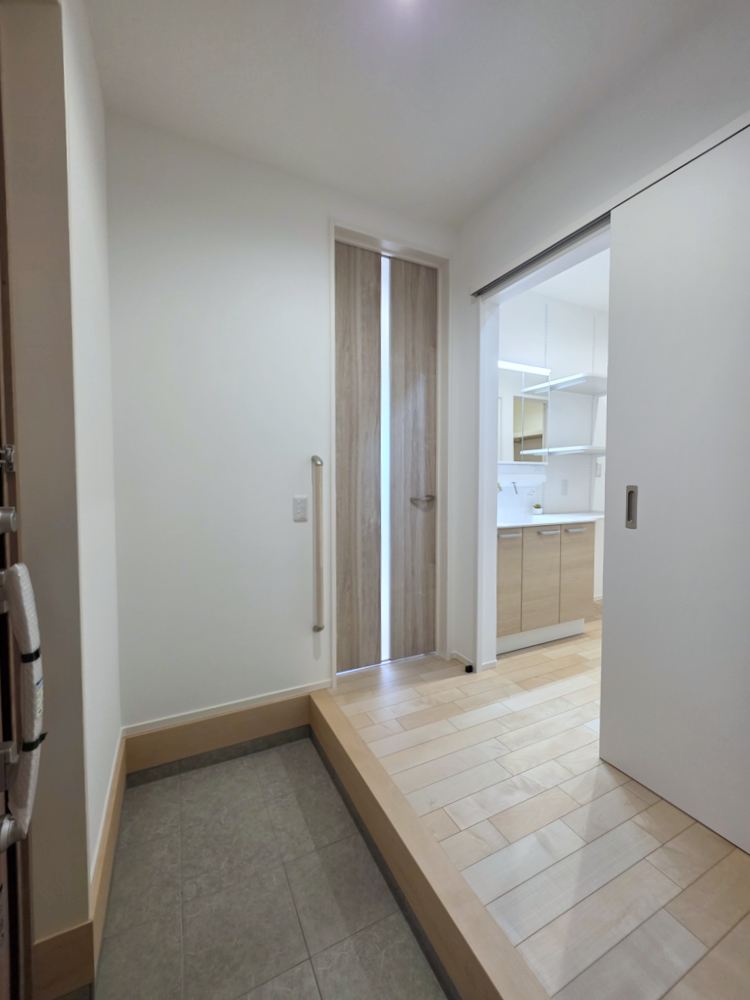 帰宅後すぐに手が洗えるように手洗い動線をつくりました。