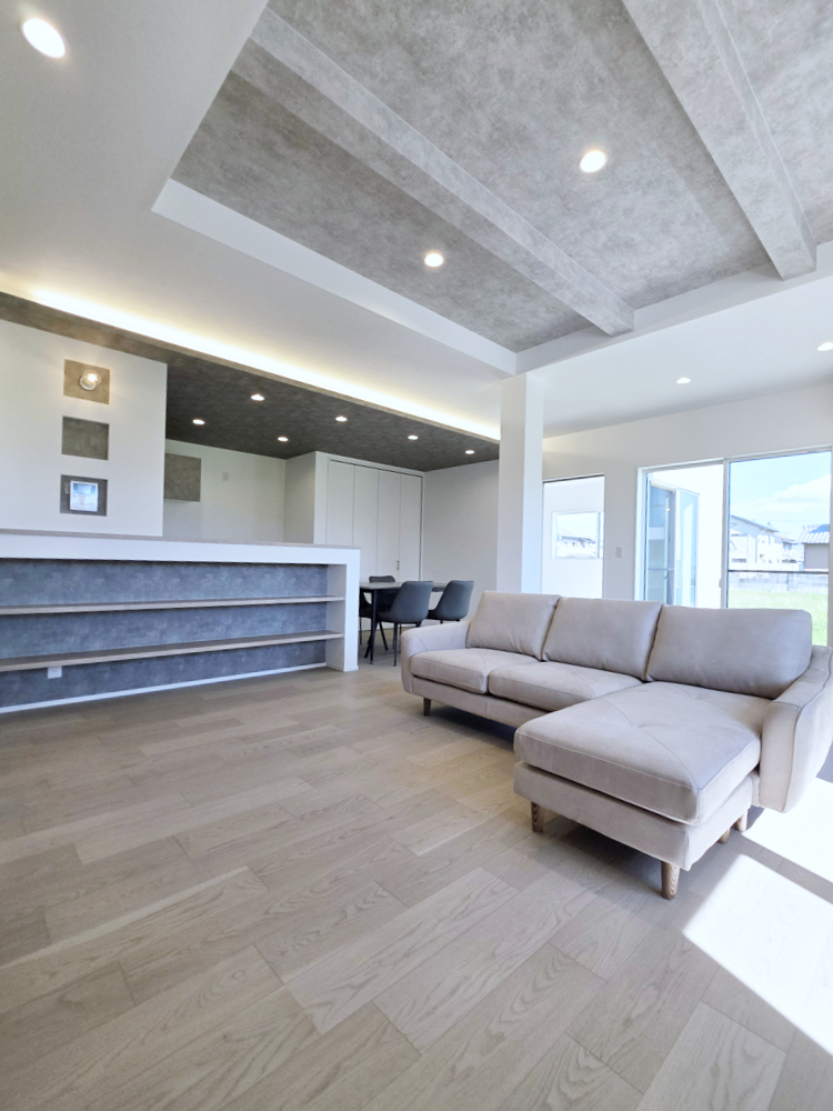 ナチュラル化粧梁LDK一体型カウンター