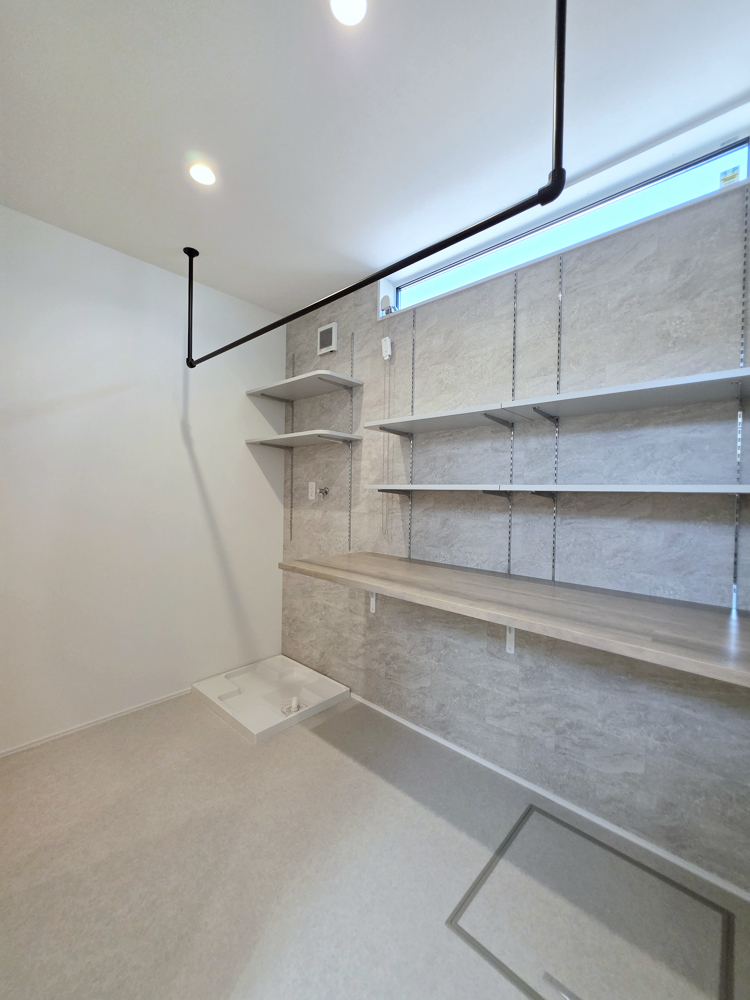 脱ぐ・洗う・干す・片づけるまでできる広々ランドリー空間