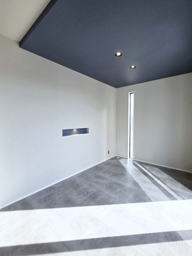 紺色の天井を採用し、空間にメリハリをプラスしました。