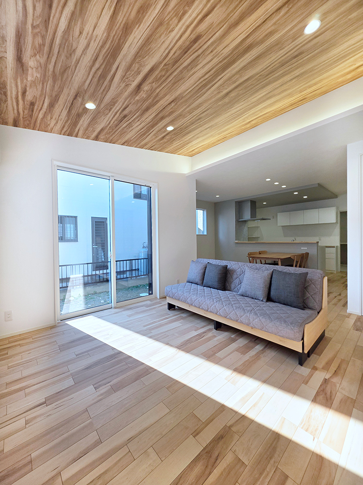 リビング横にベッドルームがあることで、小さなお子様のいるご家族も、安心して見守りができます。階段を上らなくてよいのも嬉しいですね♪