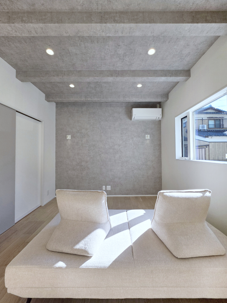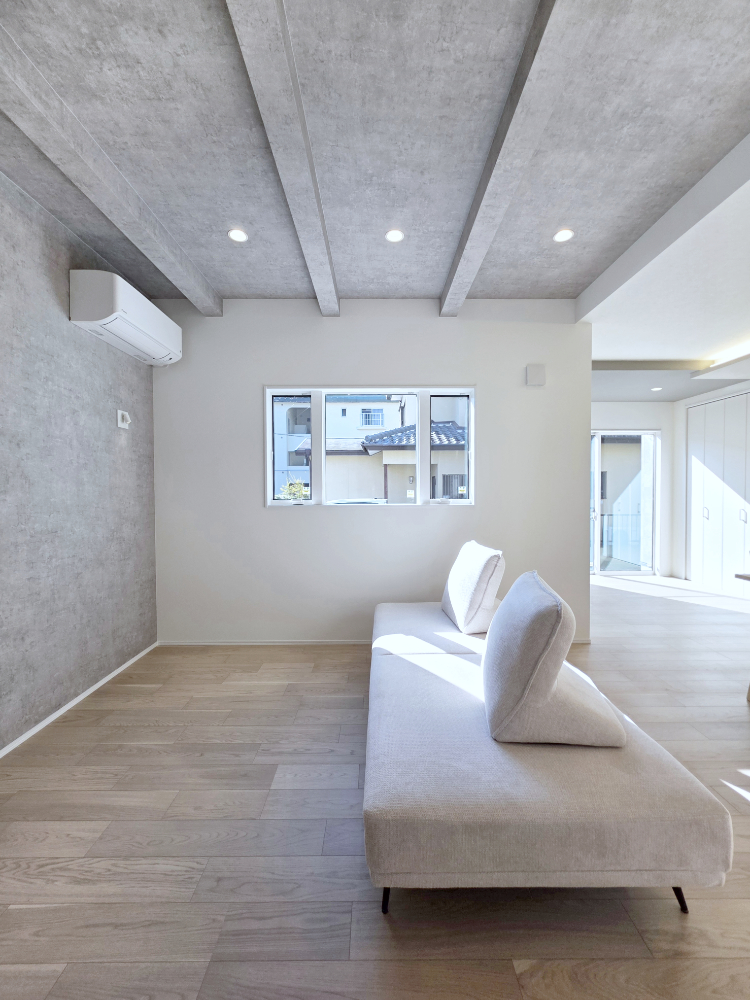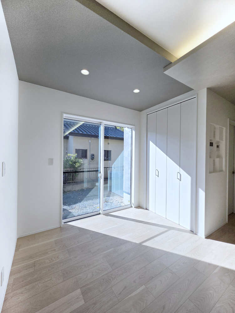 プライベートガーデンカスタヌック1階寝室平屋風コンセプト下がり天井化粧梁日当たり良好浜松市一戸建て建築実例