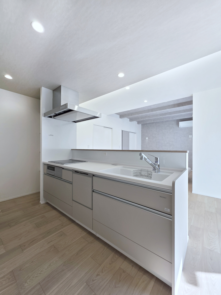 LDK全体を見渡せるオープンキッチンは、家族との会話を楽しみながら料理ができます。