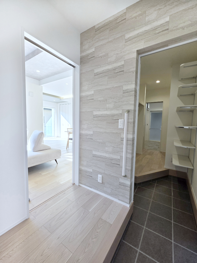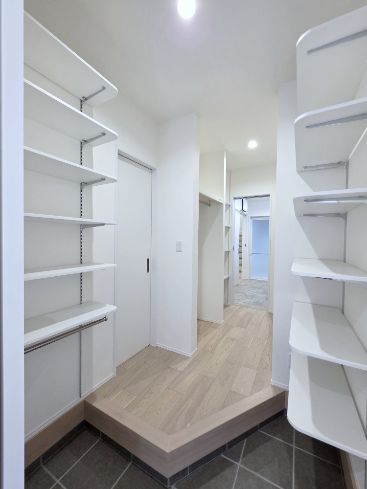 奥はファミリークローゼットに繋がっているので、帰宅後そのまま上着やバックを片づけられる嬉しい動線です。