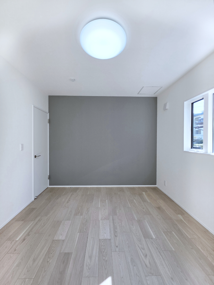 明るい色味のフローリングが、部屋全体をより広く開放的に見せてくれます♪グレーの壁紙とも相性抜群です。