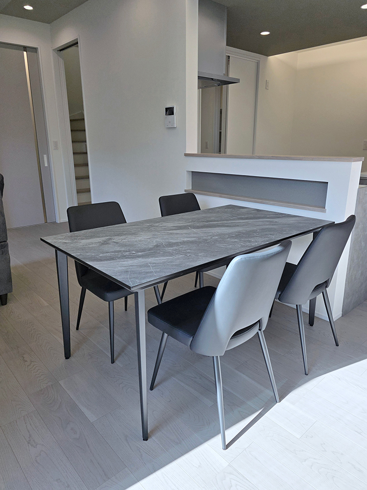 大理石調のダイニングテーブルを主役に、ホテルライクな洗練された
