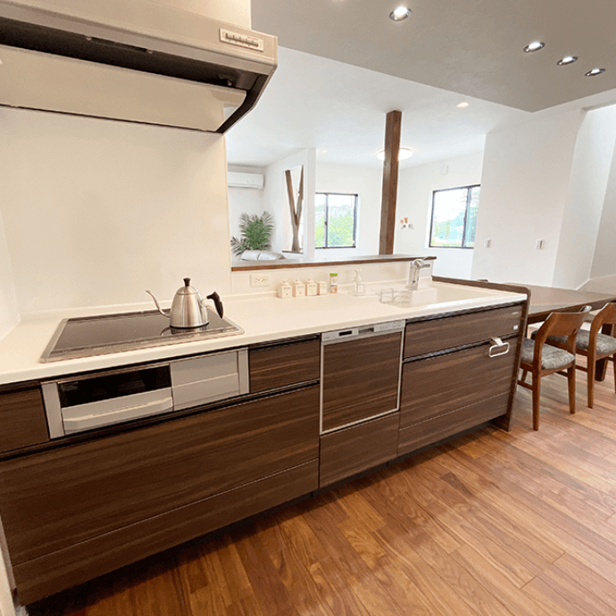 熱や衝撃、汚れに強く、お手入れ簡単。カウンターとシンクのつなぎ目に隙間や段差がないので、汚れがたまる心配がありません。