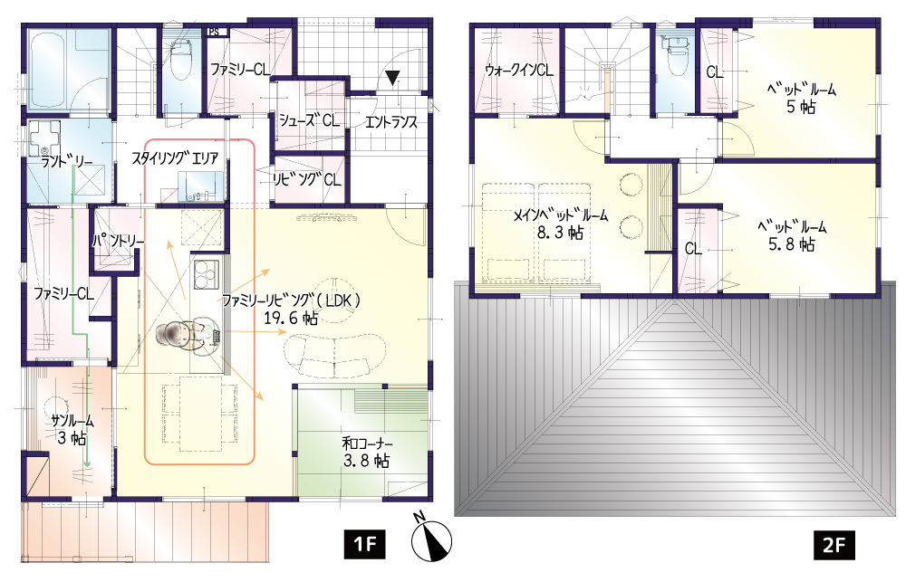 - ★家族によって生活スタイルが違ってもストレスフリー★向かいたい場所に最短距離で向かえるように各所をウォークスルーにしたお家になります。