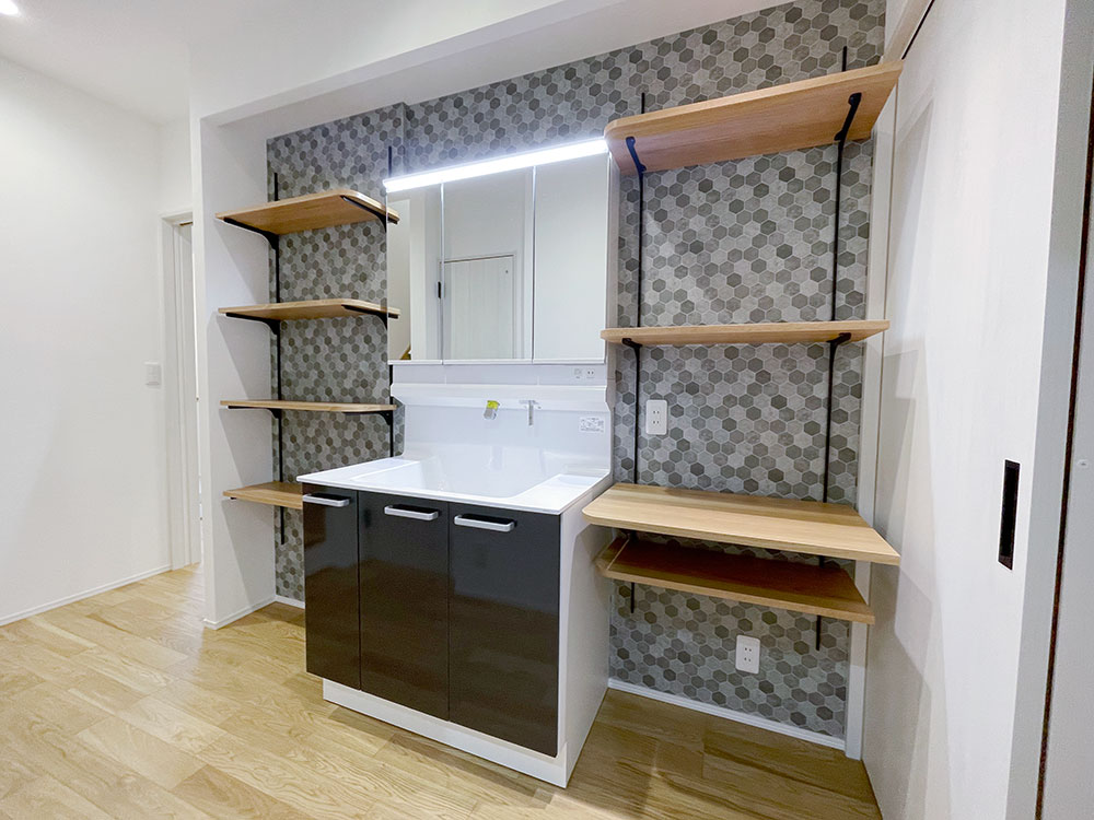 帰宅してからリビングに入るまでの帰宅の動作を考えた間取り!シューズクローゼットからランドリーまで、直線的に向かっていけます♪1階にはサンルームに加えベッドルームもあり、小さいお子様がいらっしゃるご家庭にも安心の設計となっております!