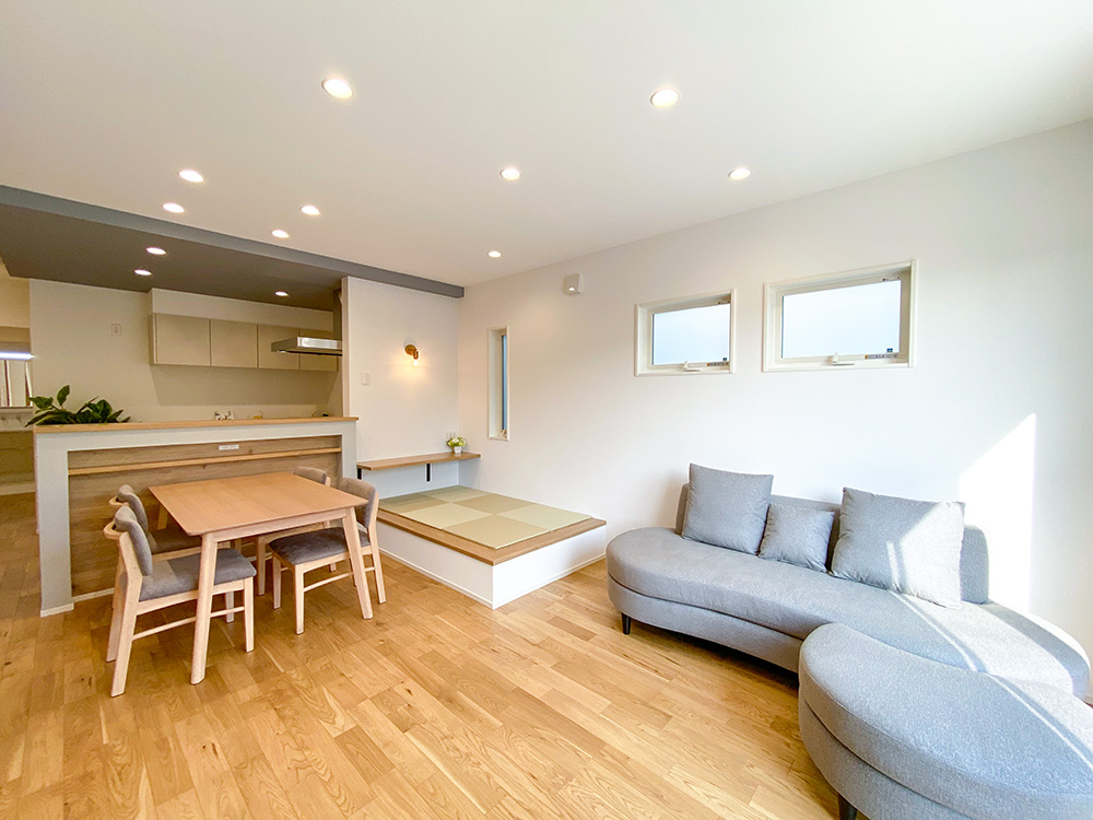 デザイン性も兼ね備えたくつろぎ空間と住み心地の良さを重視した畳リビングの家。