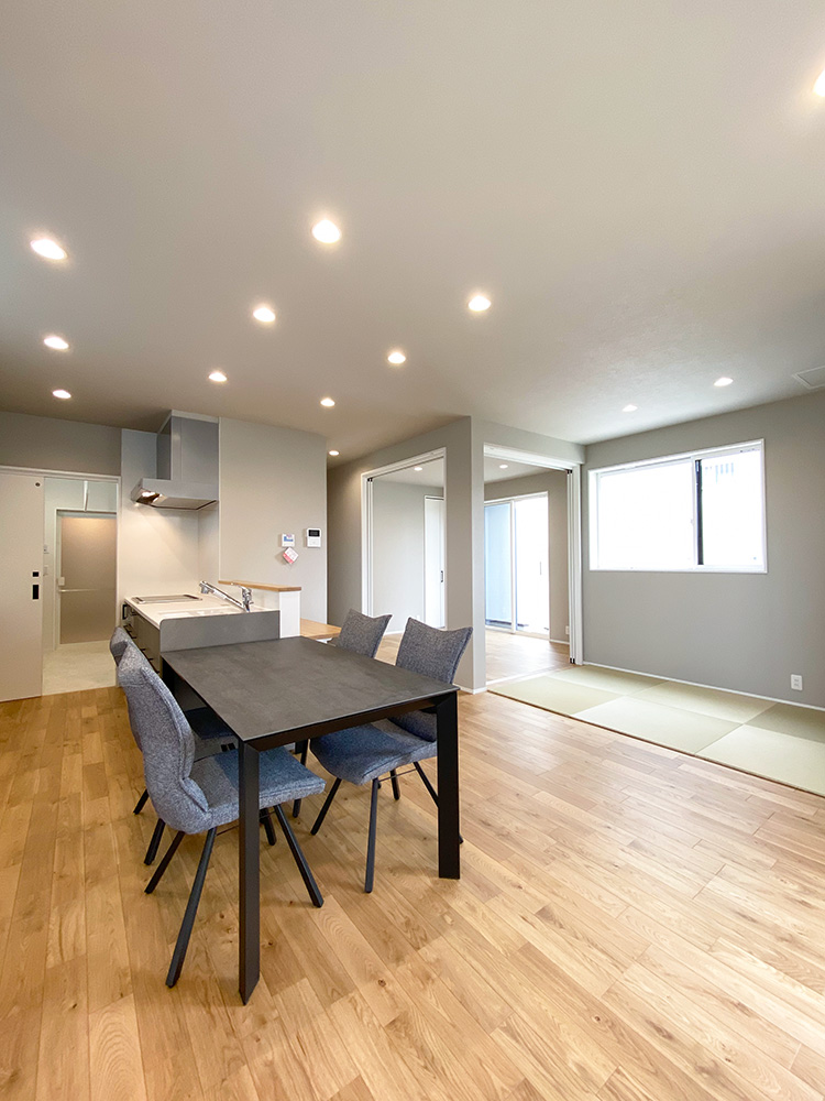 外構付き!行き止まりのない間取りで快適な生活を実現!広々とした3LDKの住まい。玄関から洗面への手洗い動線や回遊動線も考慮され、家族の移動がスムーズです!
