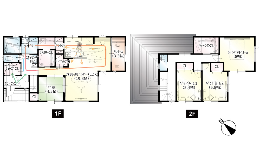 - 1階にベランダ代わりのサンルーム、家族で寝られるベッドルームをつくりました!家事時短・楽しく子育てを叶える『平屋風の家』です。