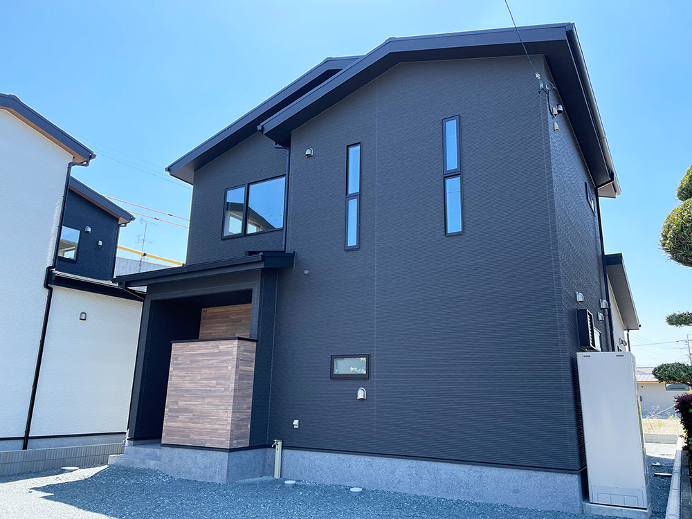 ロスの無い間取り!!斜め壁のある建物形状で広々室内を確保しました! 大容量収納でスッキリ暮らせるバランスがちょうどいい家です♪