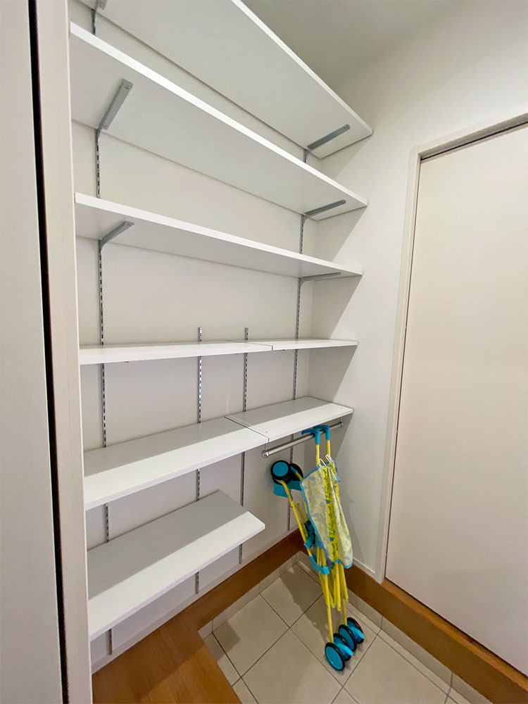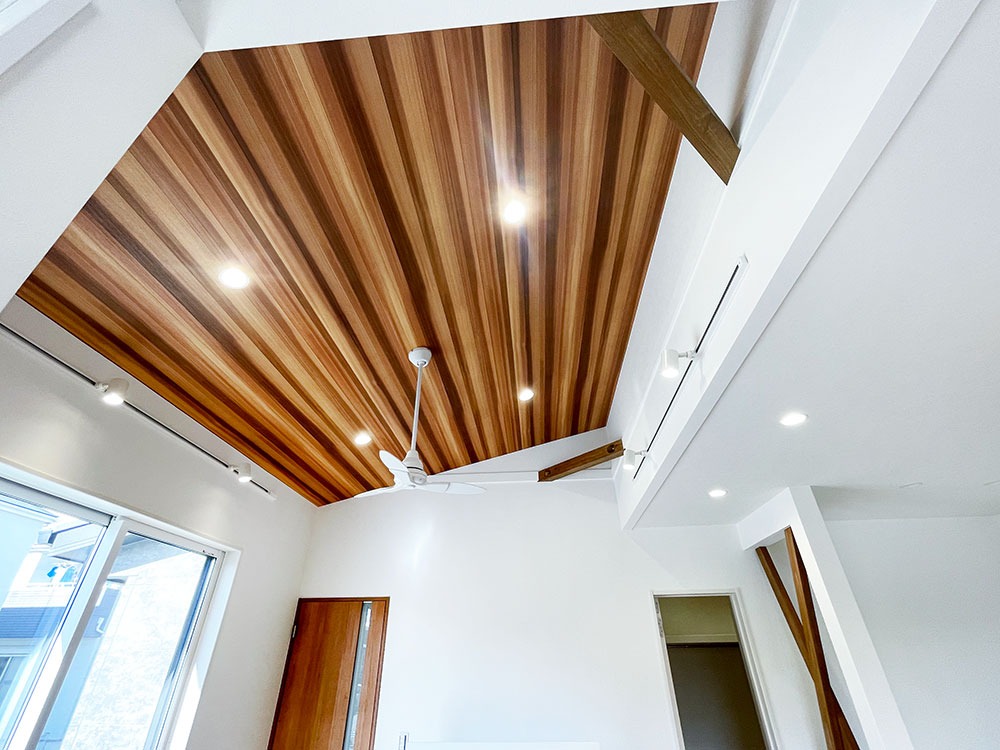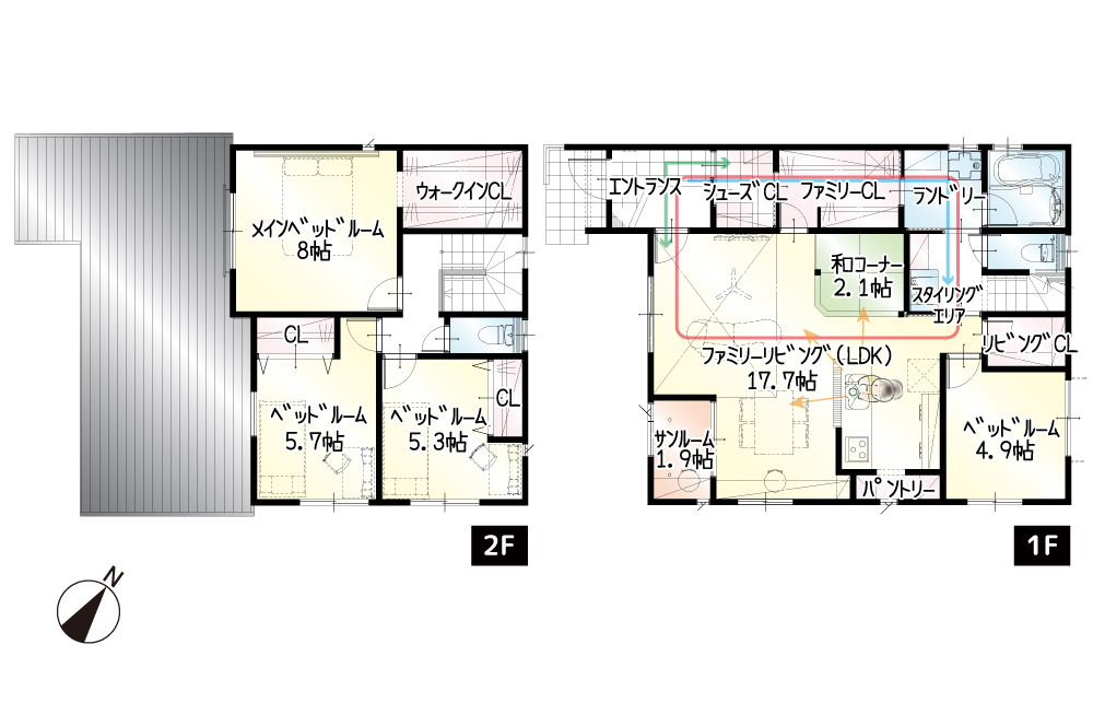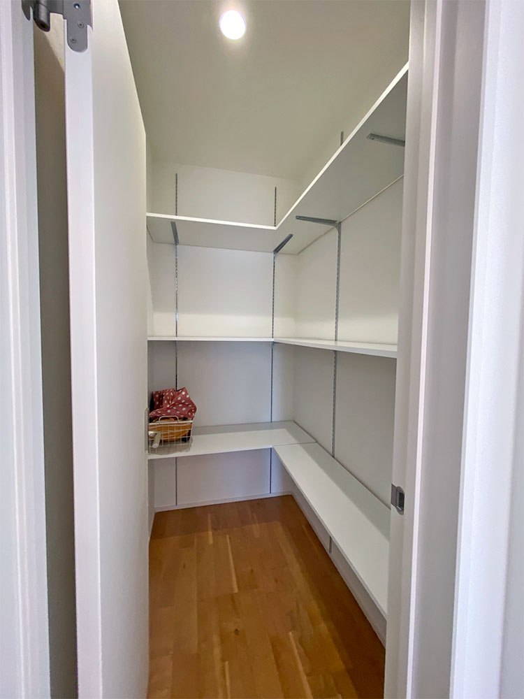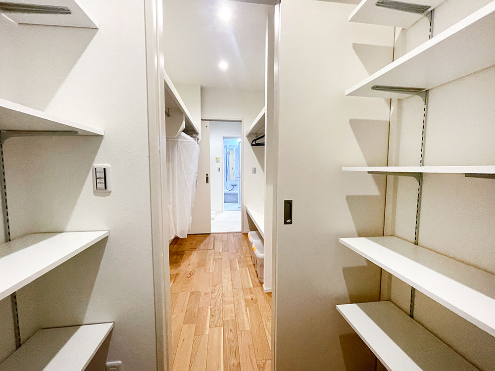キッチン横に和コーナーのあるお家になります。LDKのどこにいても家族の様子が見渡せるような配置にしました。キッチン裏に洋室があるので、子育て寝室としても最適です。