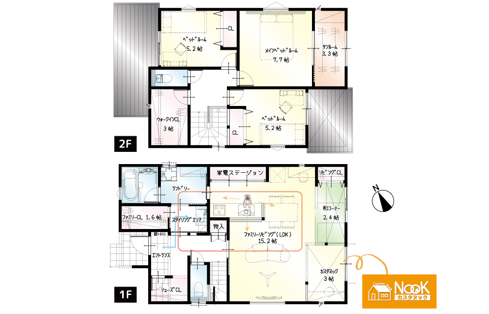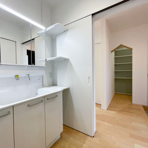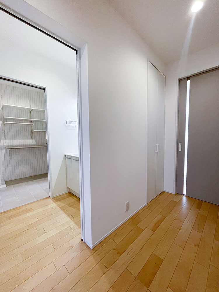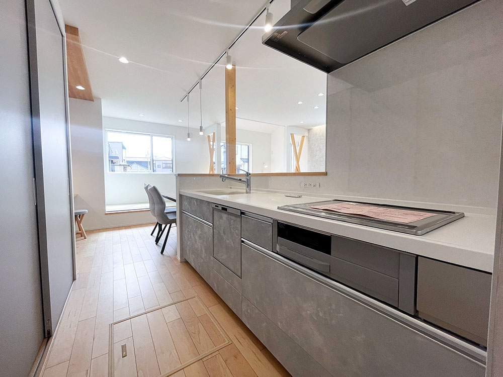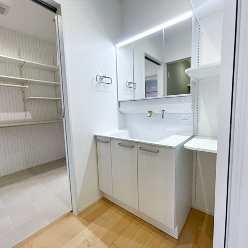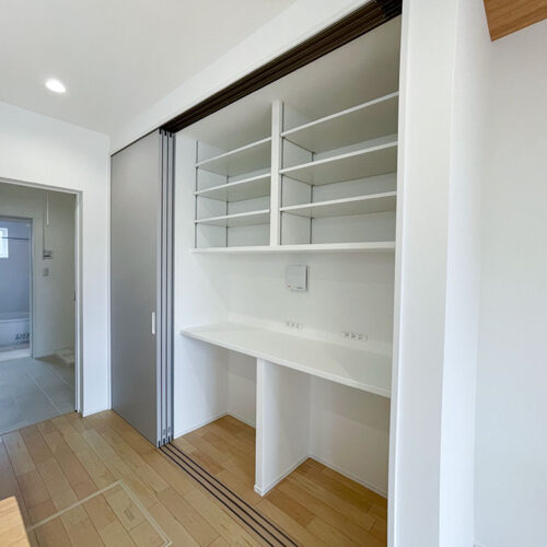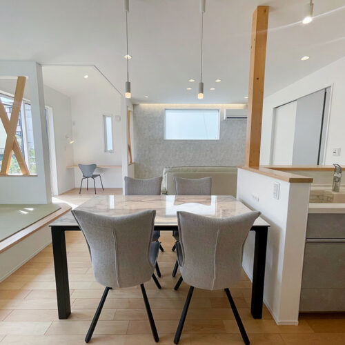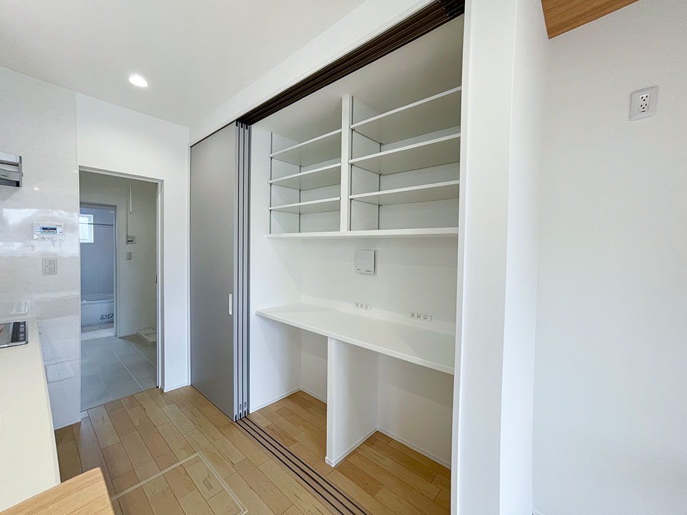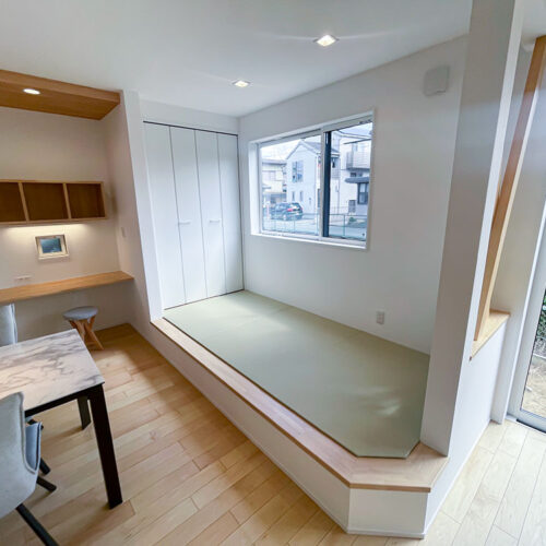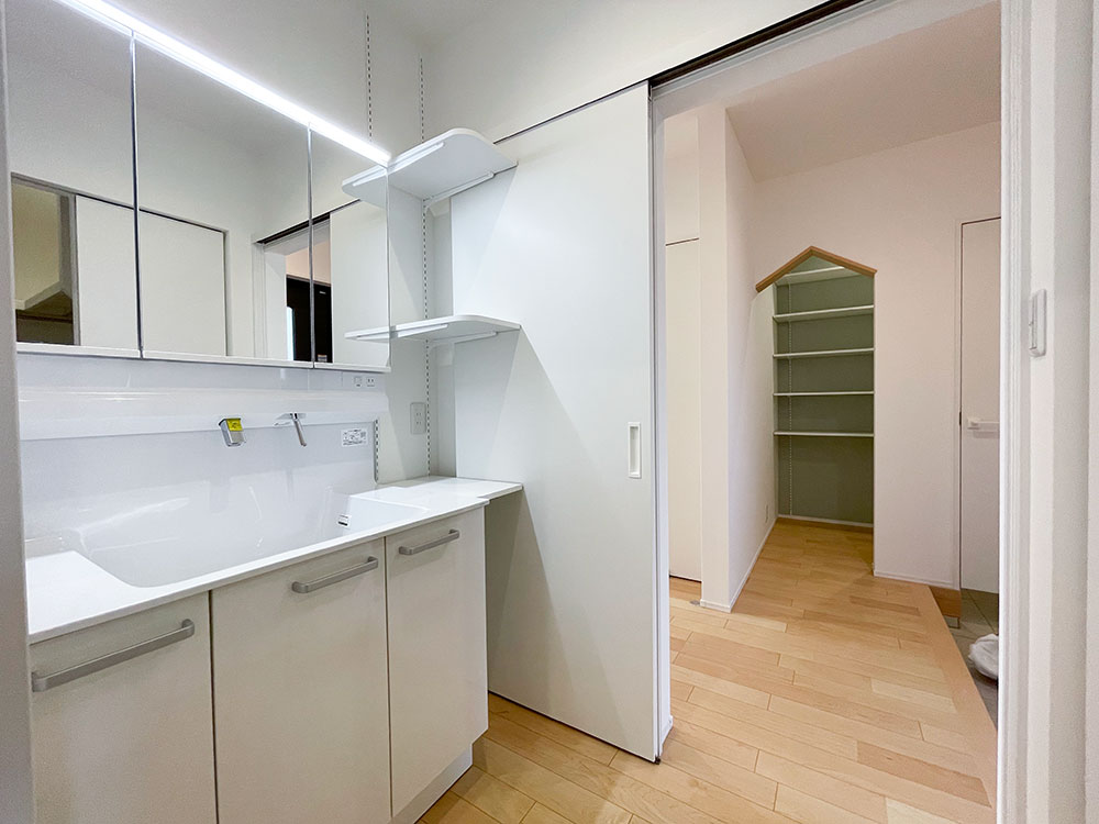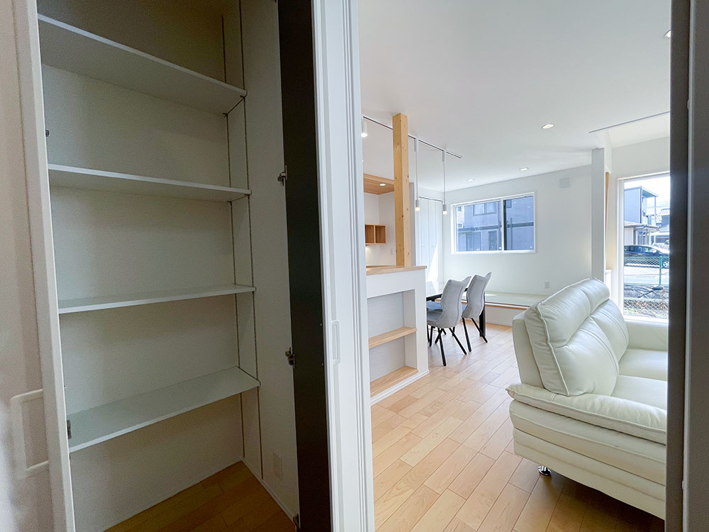 リビングにある小上がり和コーナーが空間の広さを感じさせます♪さらに自由な使い方ができるカスタヌックで、気ままにゆったりしたライフスタイルを実現♪玄関からサッと手洗いに向かえる帰宅動線や、乾いた洗濯物をすぐに収納できるファミリークローゼットなども!