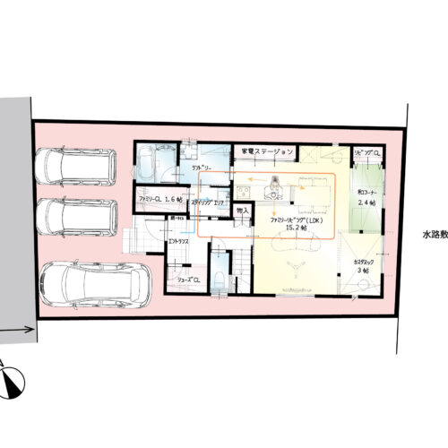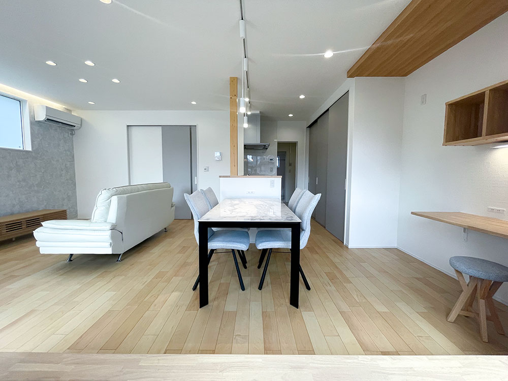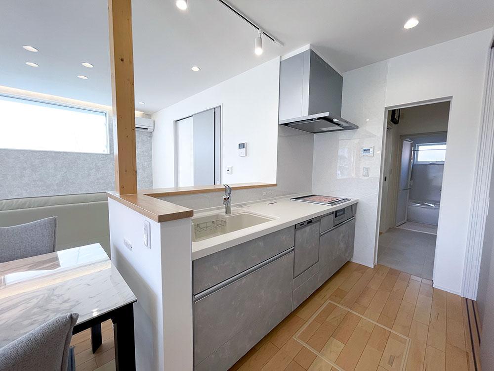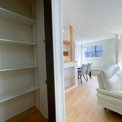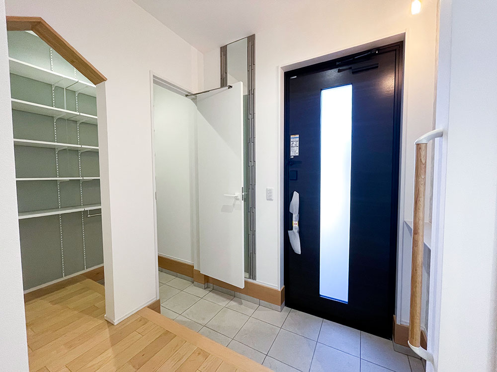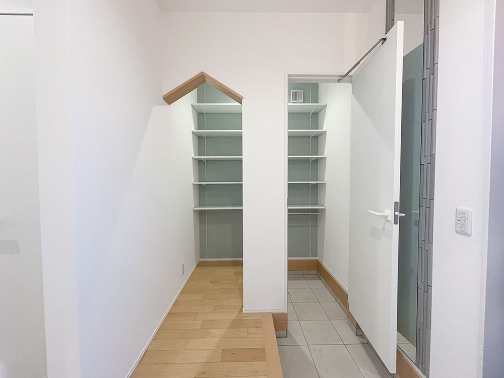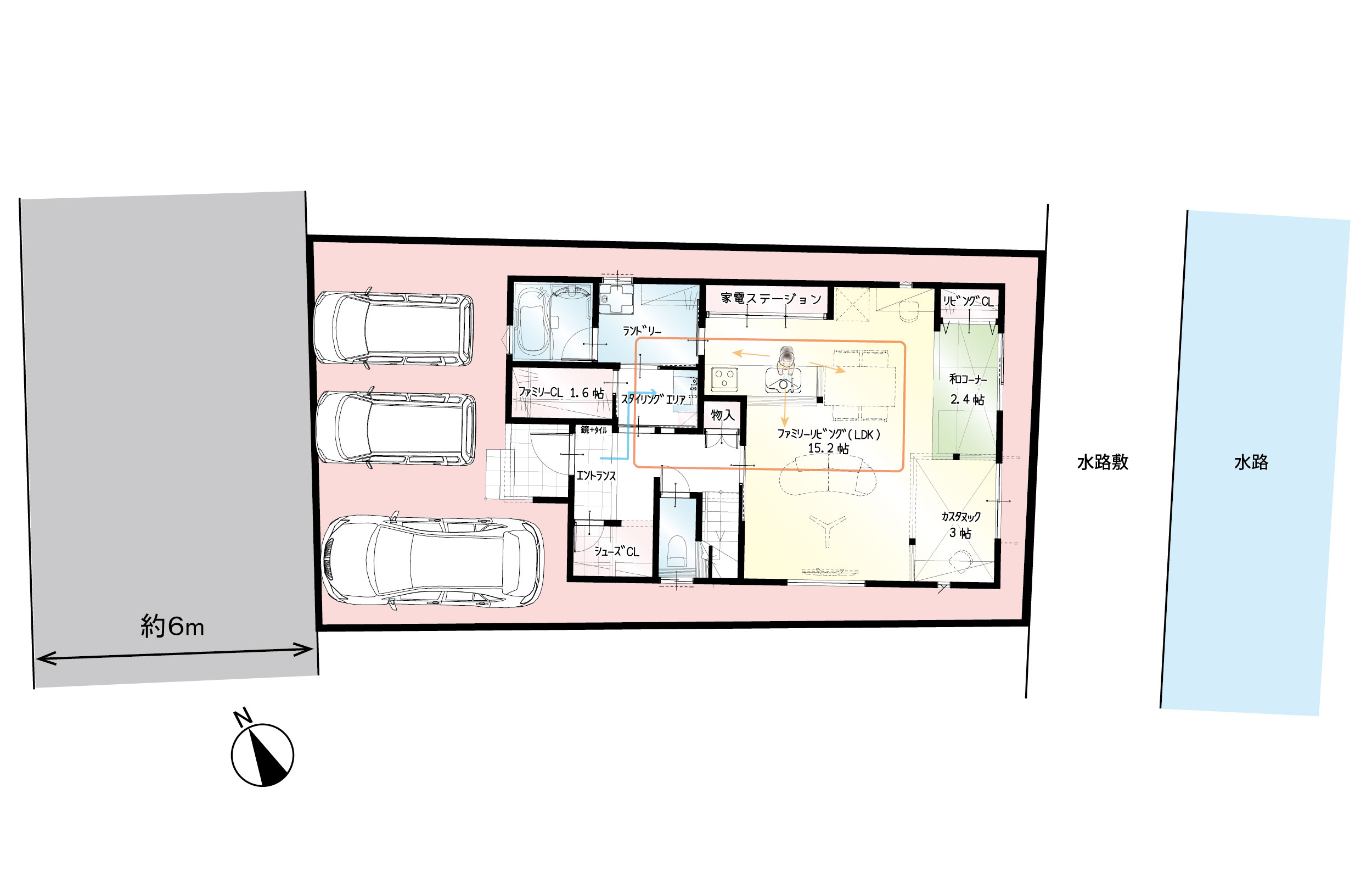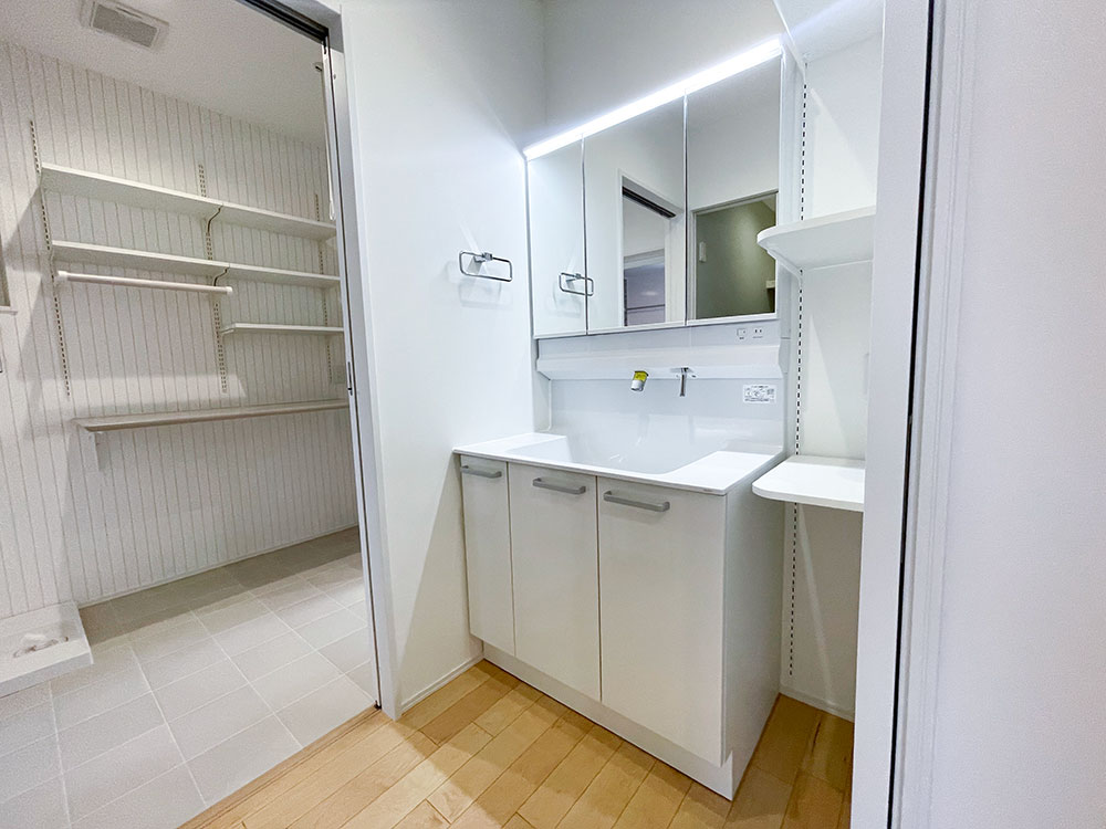 リビングにある小上がり和コーナーが空間の広さを感じさせます♪さらに自由な使い方ができるカスタヌックで、気ままにゆったりしたライフスタイルを実現♪玄関からサッと手洗いに向かえる帰宅動線や、乾いた洗濯物をすぐに収納できるファミリークローゼットなども!