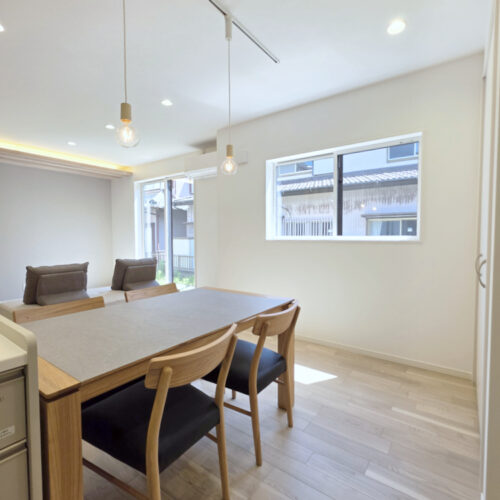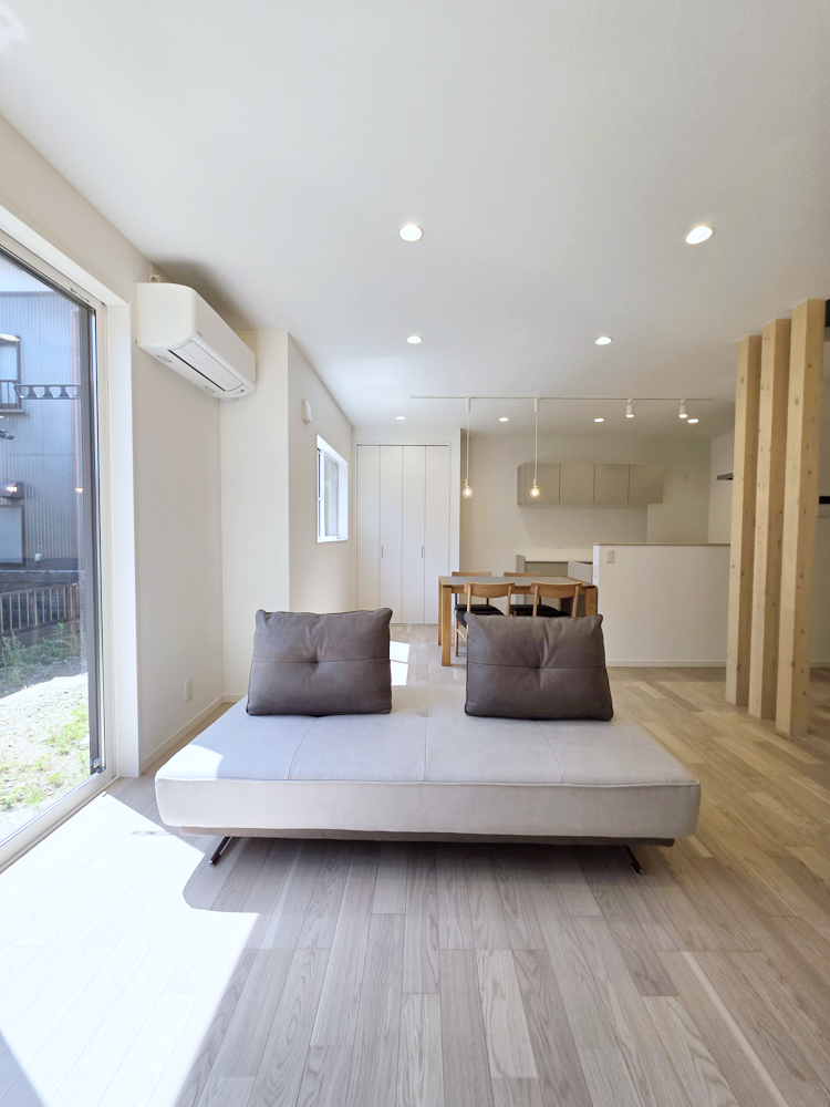 弊社の建売住宅は、リビングエアコン、全室LED照明、ソファ、ダイニングセットがついています!快適な生活を手軽に始められます。
