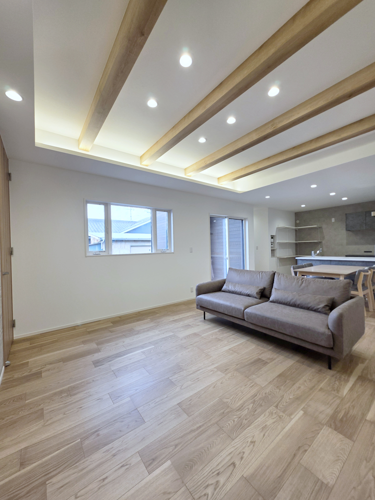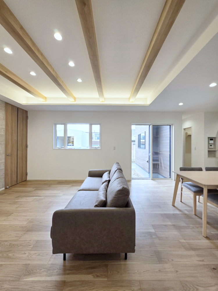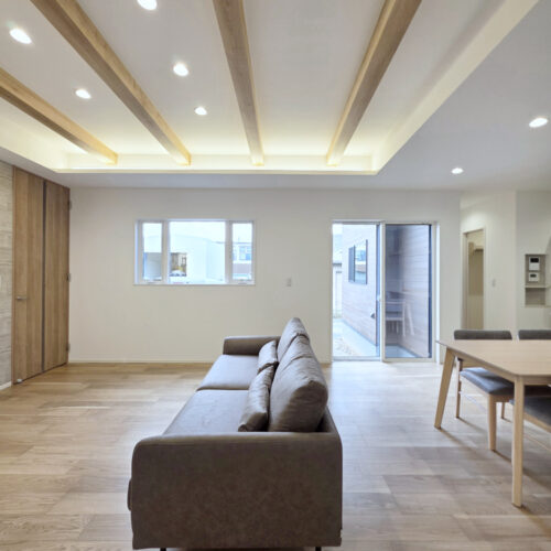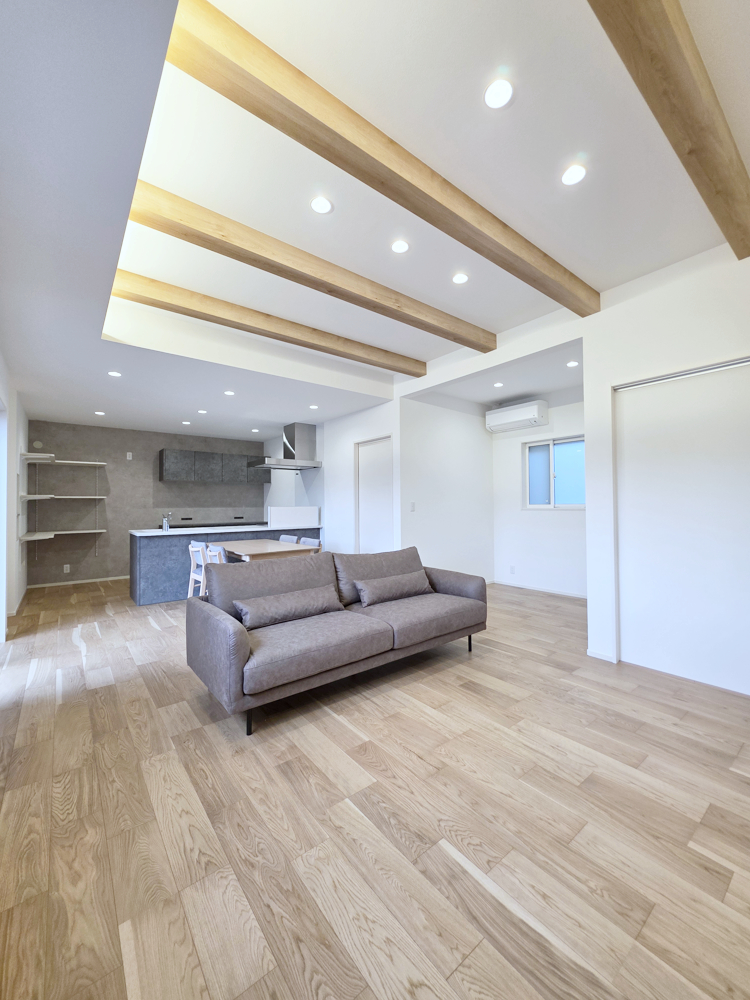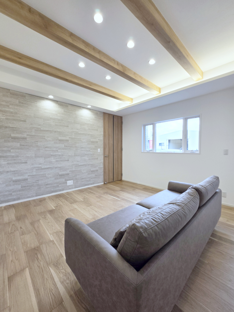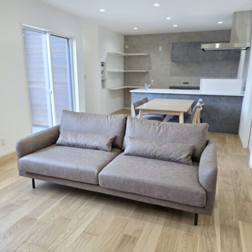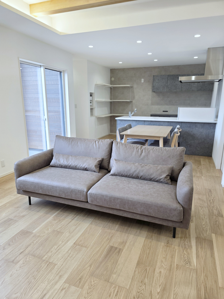 弊社の建売住宅は、リビングエアコン、全室LED照明、ソファ、ダイニングセット、スツールがついています!快適な生活を手軽に始められます。