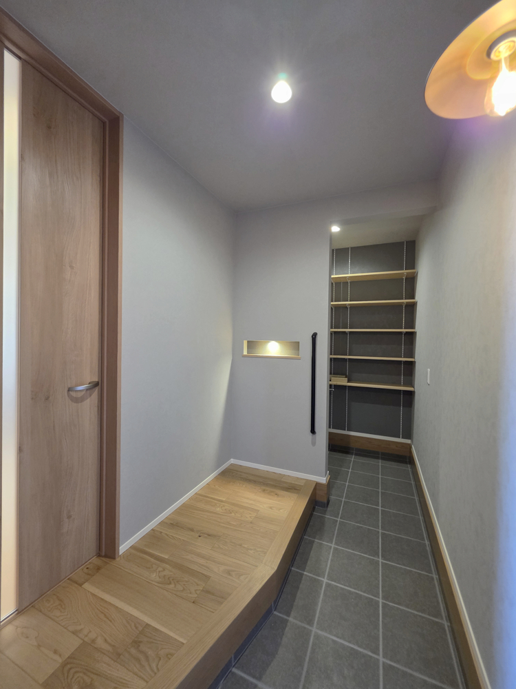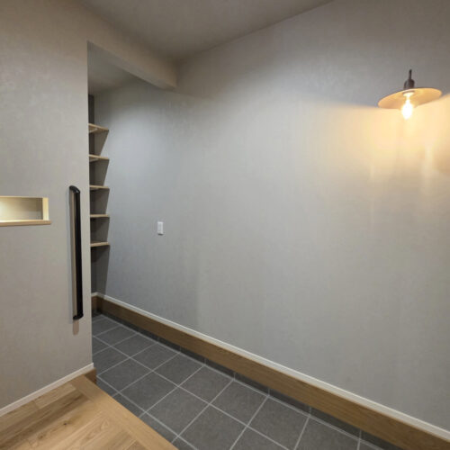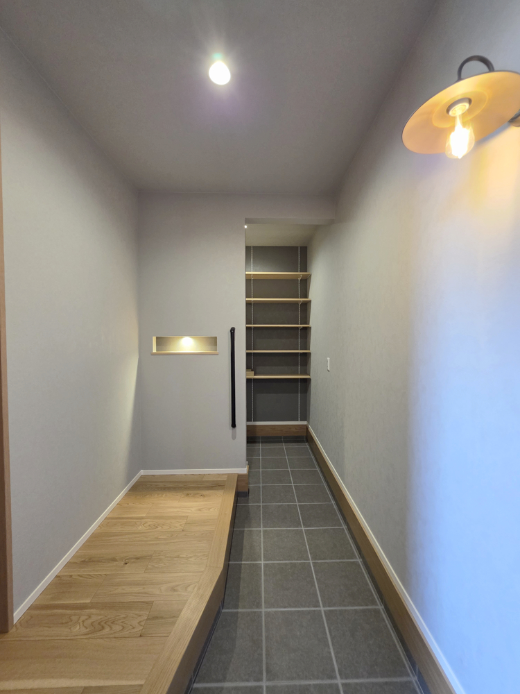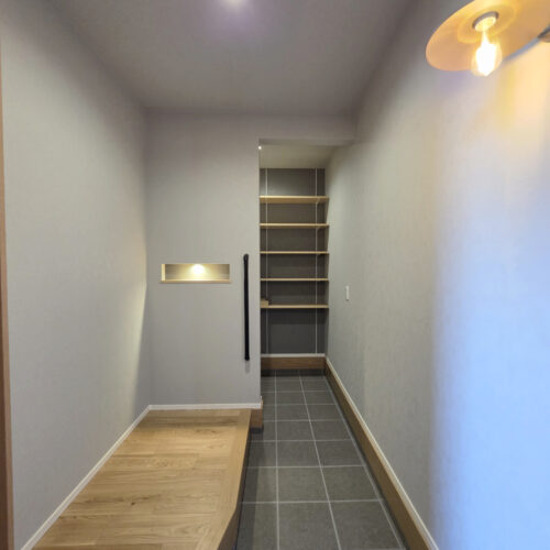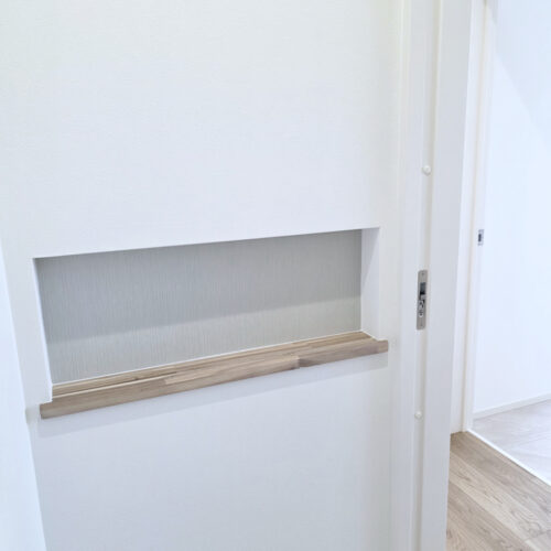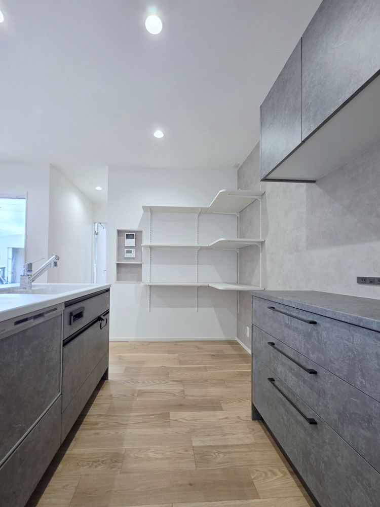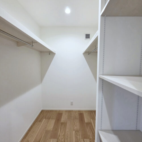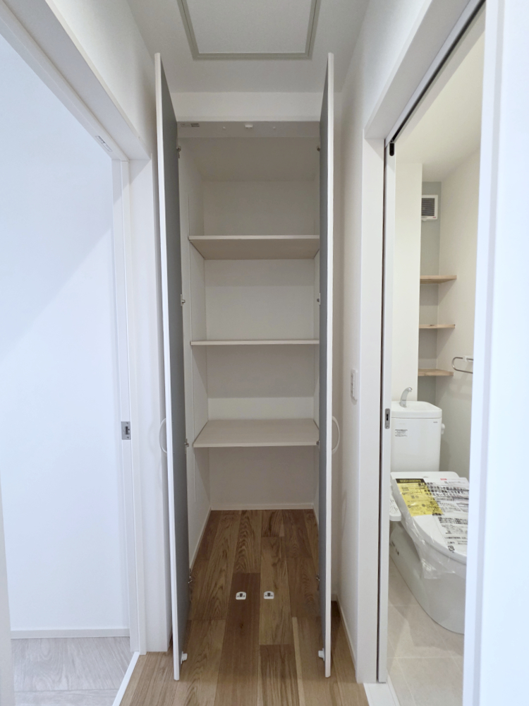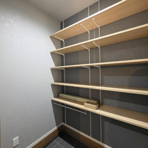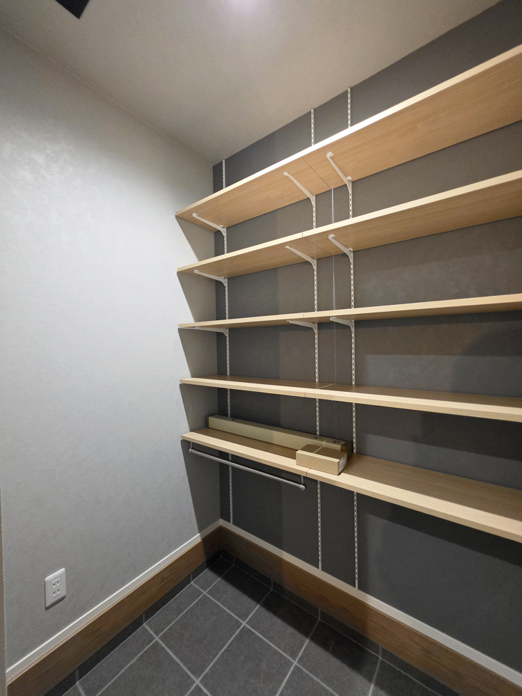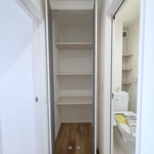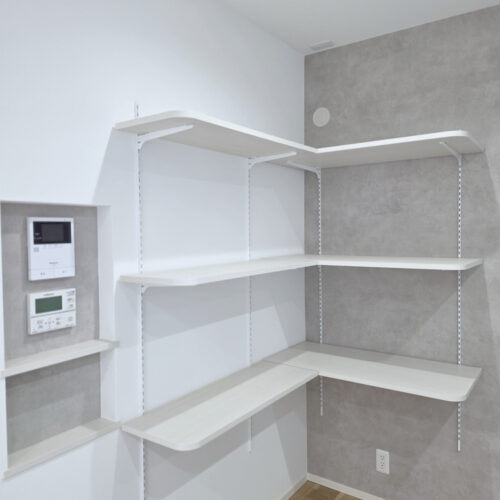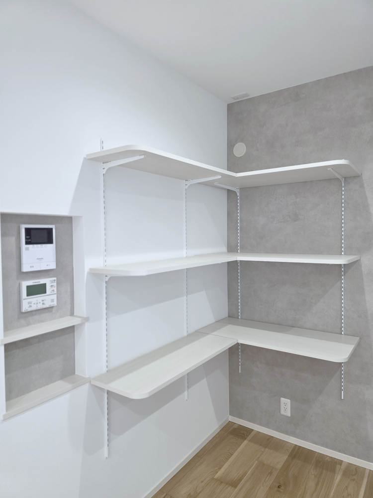 ファミリーCLは、日用品や防災グッズの収納に加え、無線ルーターやLAN配線をまとめて収納し、LDKをスッキリ見せる工夫がされています。