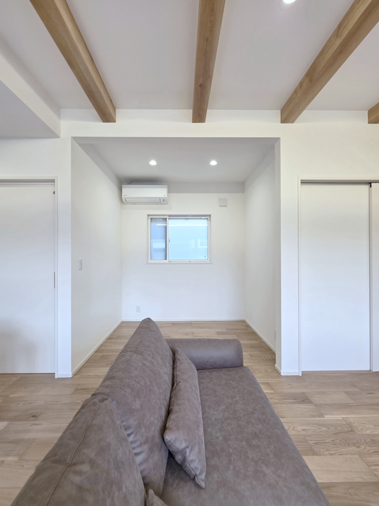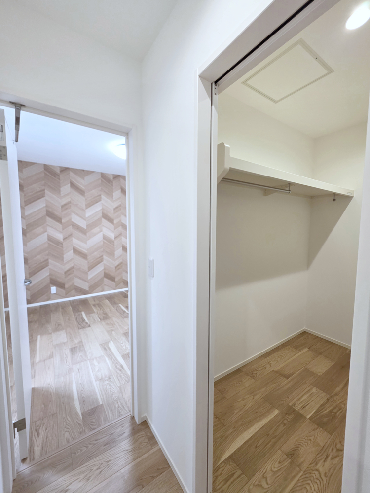 西側道路に面した7帖のメインベッドルームは、LDKと繋がり、ファミリークローゼットも隣接。お子様が小さいうちは1階で生活が完結できる、おすすめの間取りです。