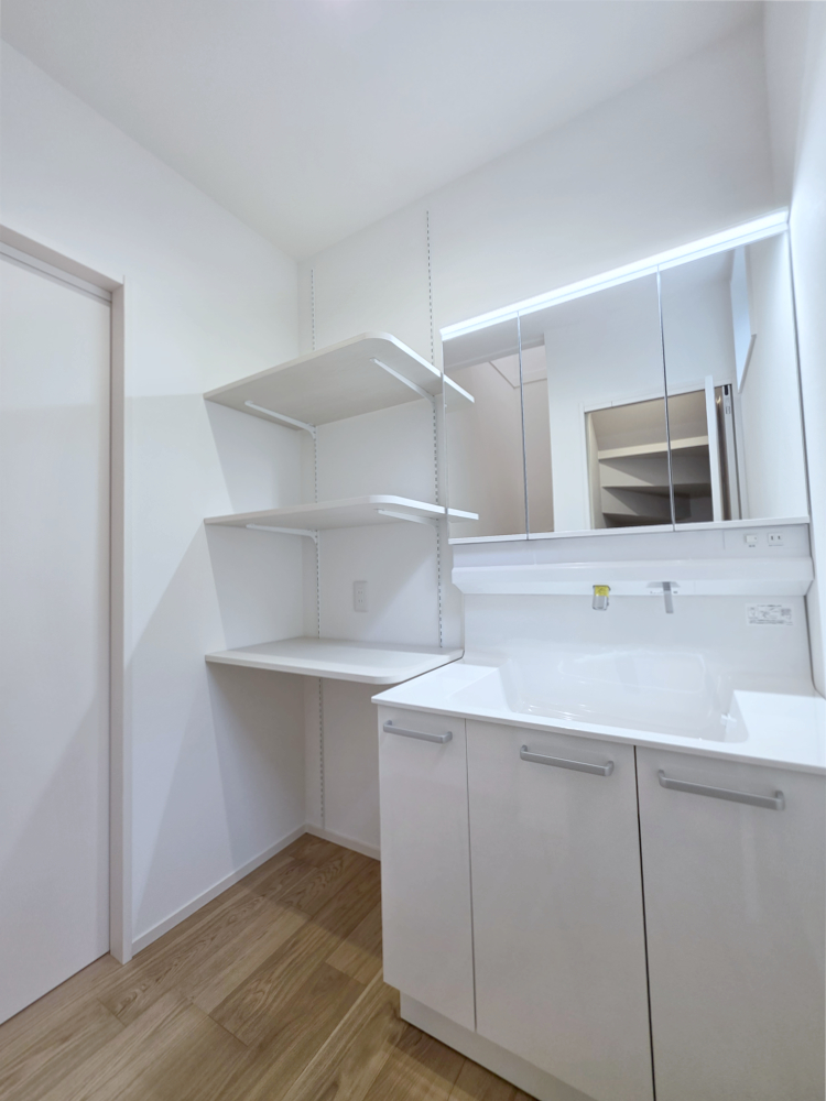 オクターブは、美しさと使いやすさを兼ね備えたデザインが特徴。広い洗面スペースと収納スペース、ワイドなミラーとLED照明、ハンドソープやタオルを置くスペースなど、快適な空間を演出します。