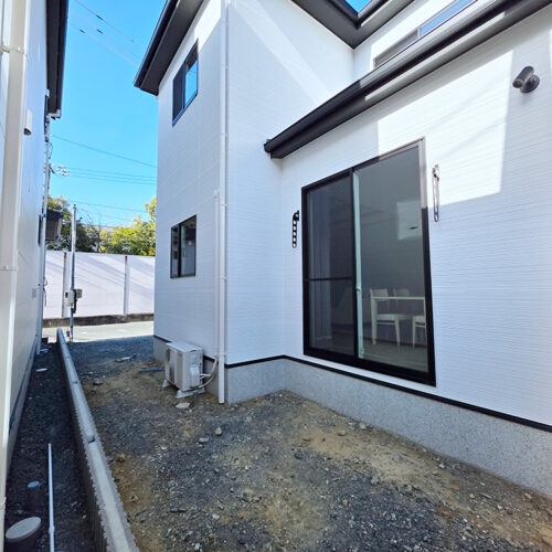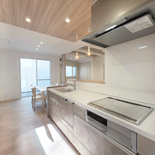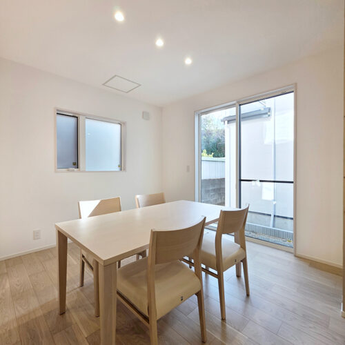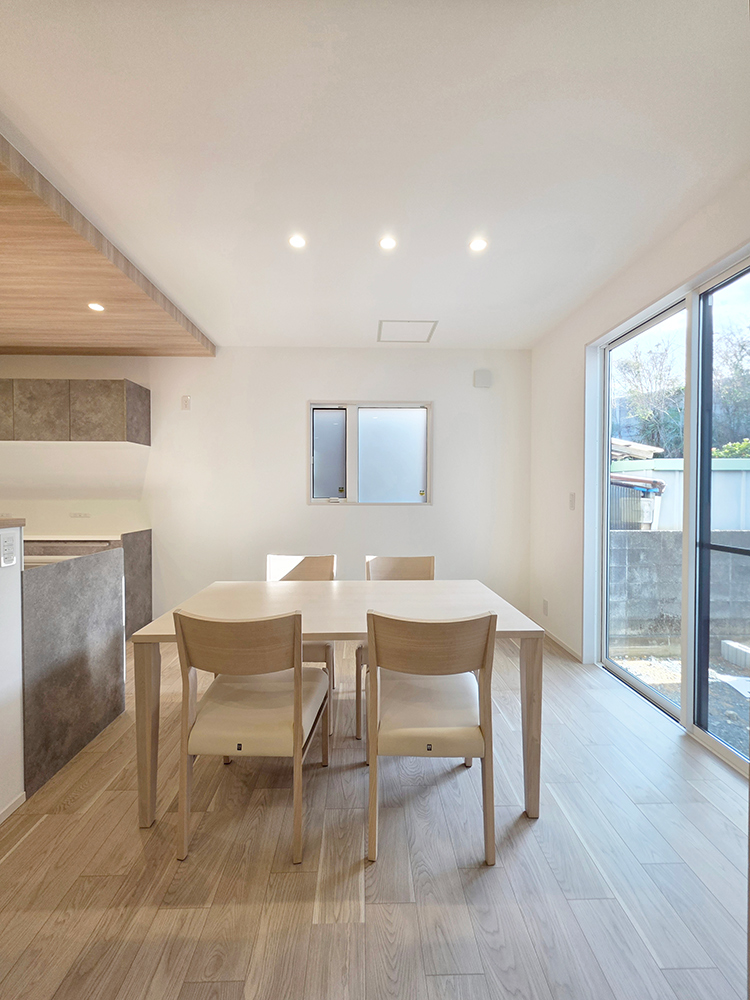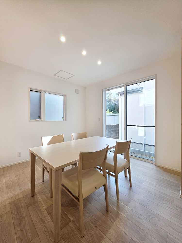 ダイニングから掃き出し窓を開けると、お子様が安心して遊べるプライベートガーデンが広がります。目の届く場所で、太陽の下でのびのびと成長する姿を見守れます。家族でのバーベキューや、ガーデニングを通して自然と触れ合う豊かな暮らしができます。