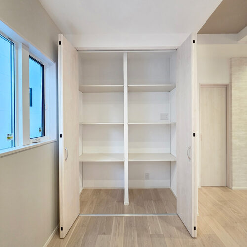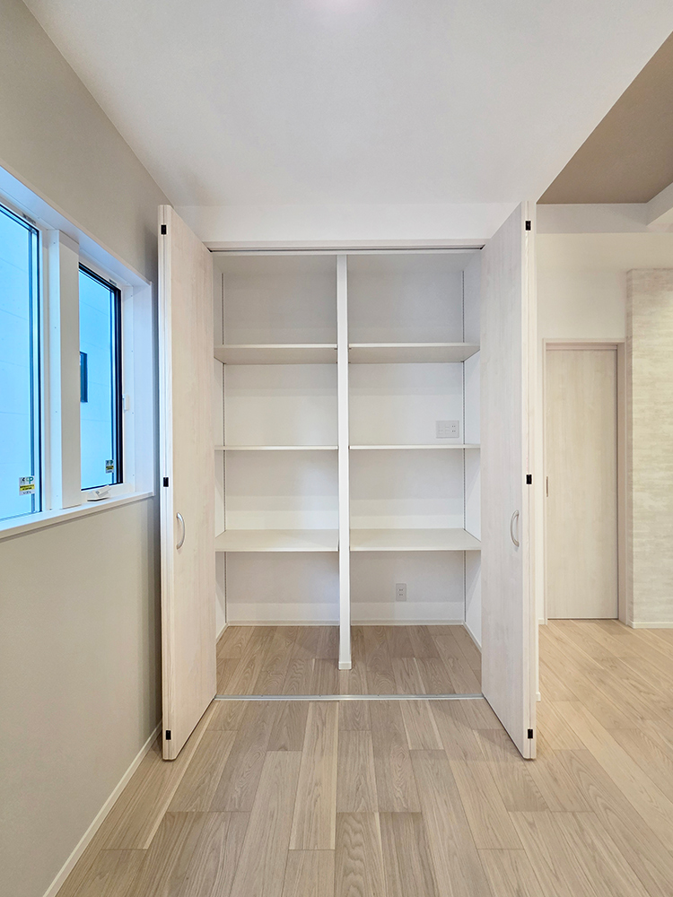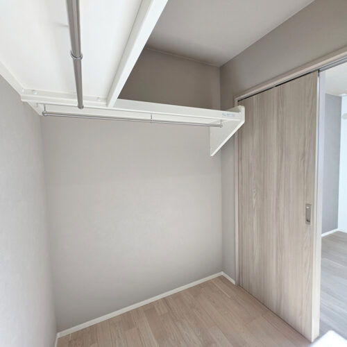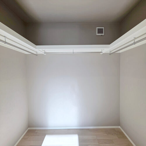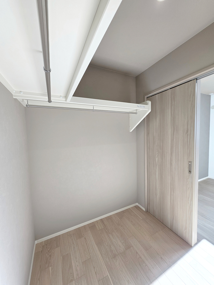 6.8帖のメインベッドルームの中に、2.5帖のウォークインCLを配置しました。季節外の衣類や家電の収納にも役立ちます!