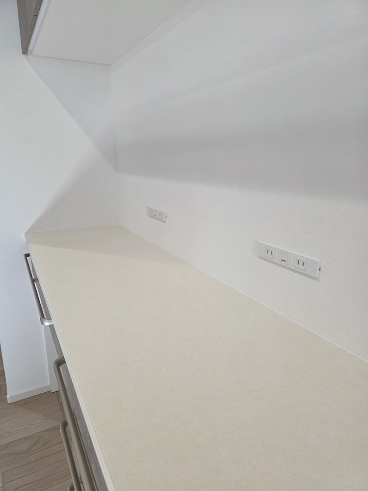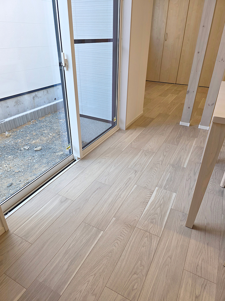 朝日ウッドテックの抗ウイルスフローリング採用。99%以上の抗菌・抗ウイルス効果で繁殖を抑制し、傷や汚れにも強く、お手入れも簡単です。