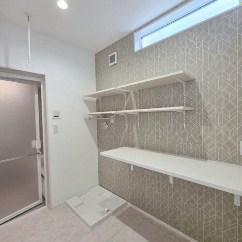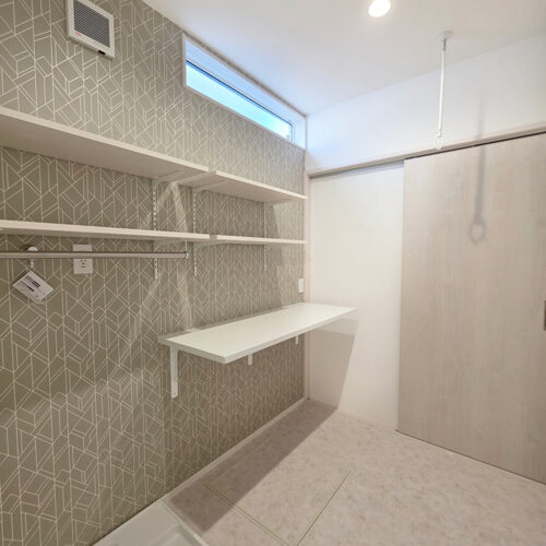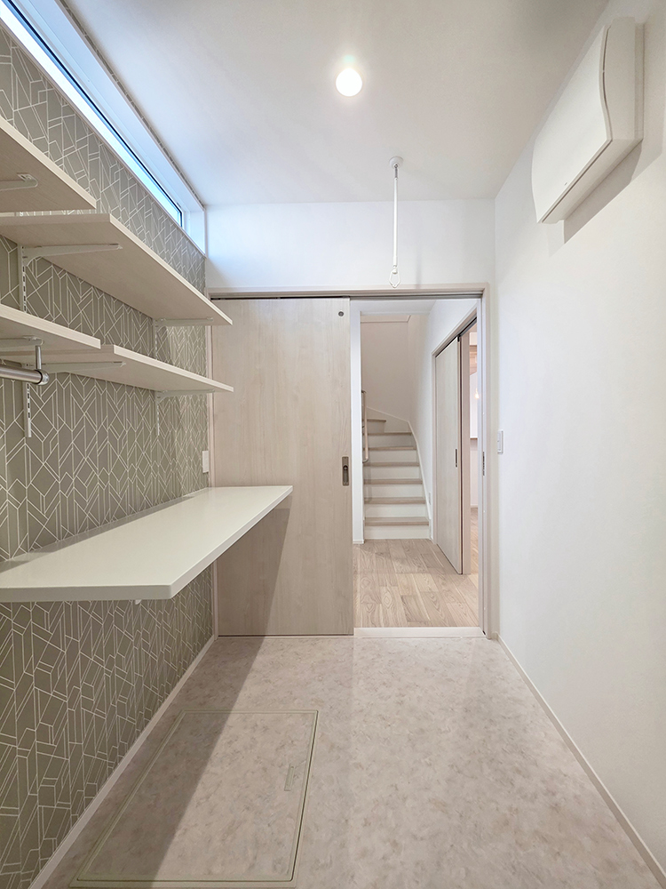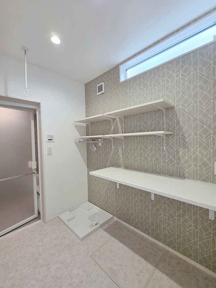 明り採りの窓もあり、天井物干しをご用意しておりますので、サーキュレーターなどを利用してこちらで洗濯物を干すことが出来ます。