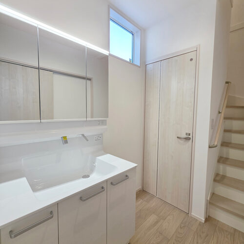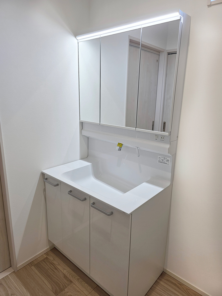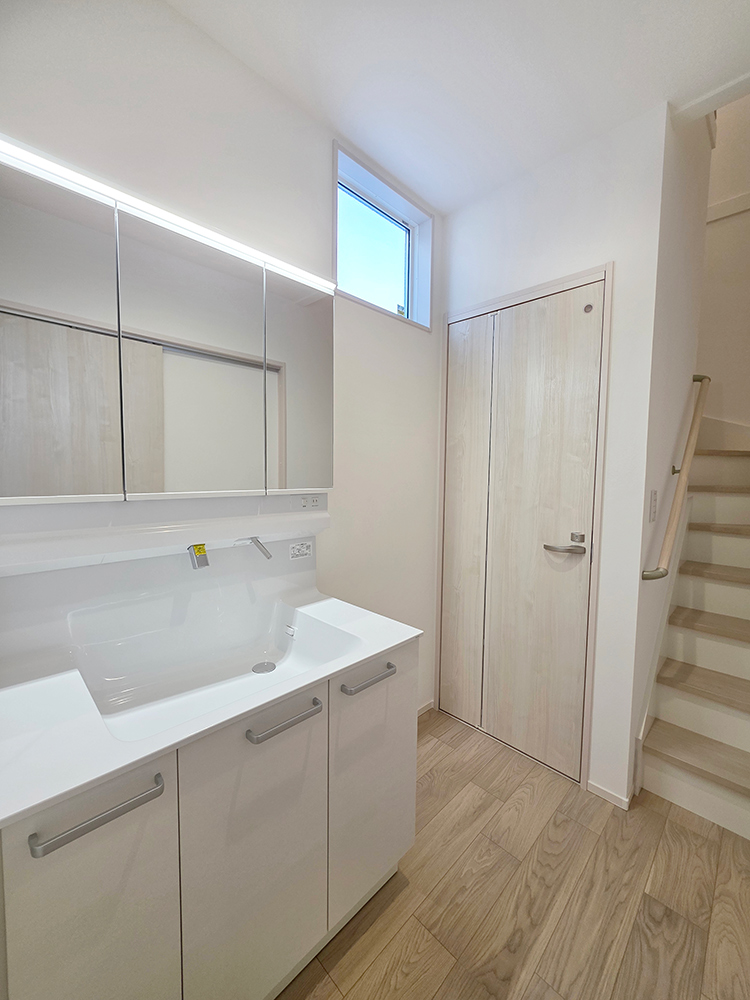 オクターブは、美しさと使いやすさを兼ね備えたデザインが特徴。広い洗面スペースと収納スペース、ワイドなミラーとLED照明、ハンドソープやタオルを置くスペースなど、快適な空間を演出します。