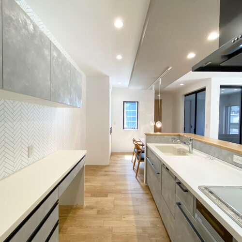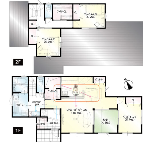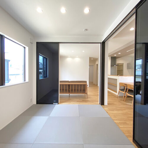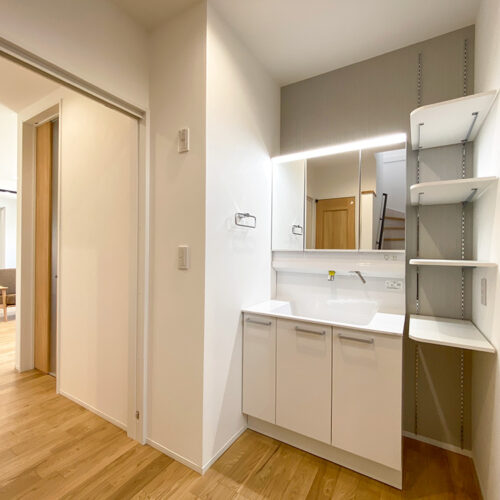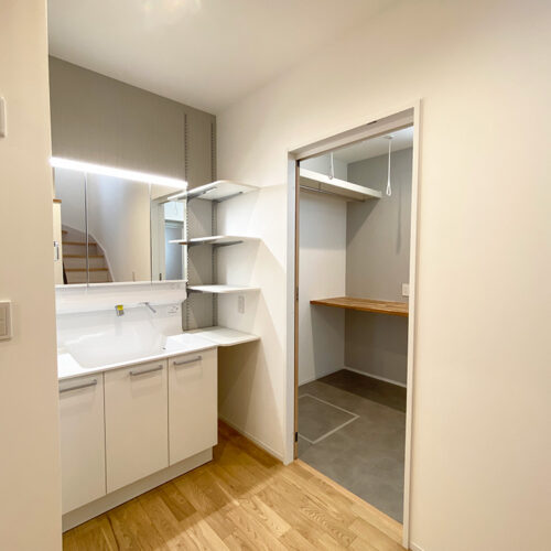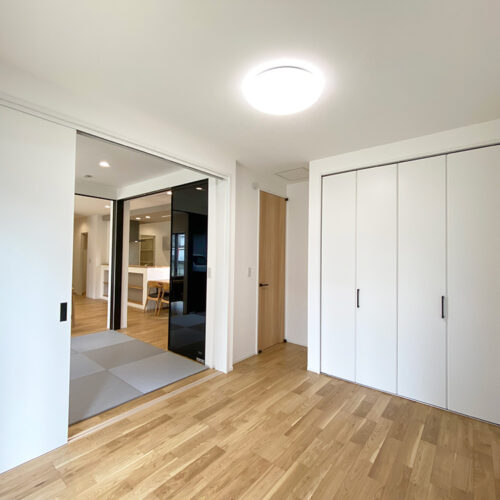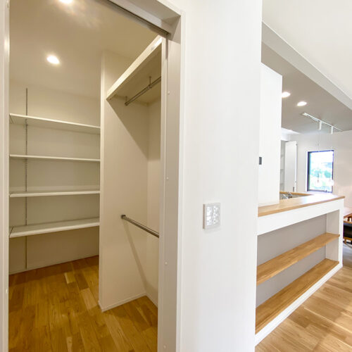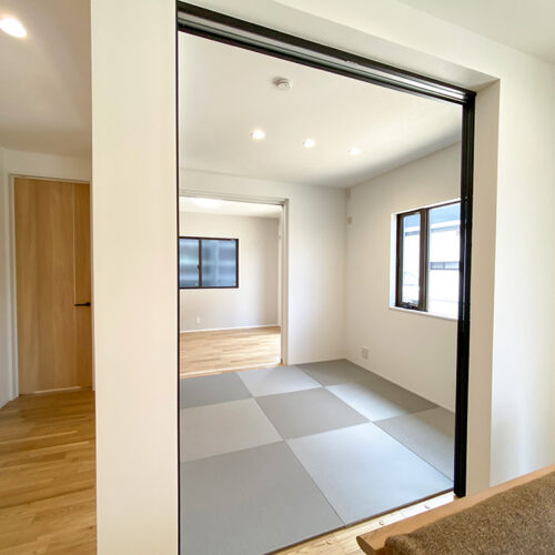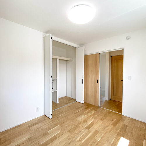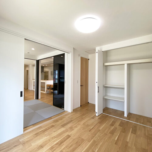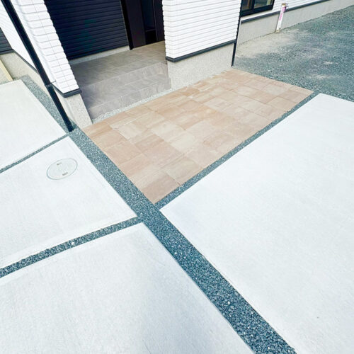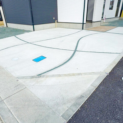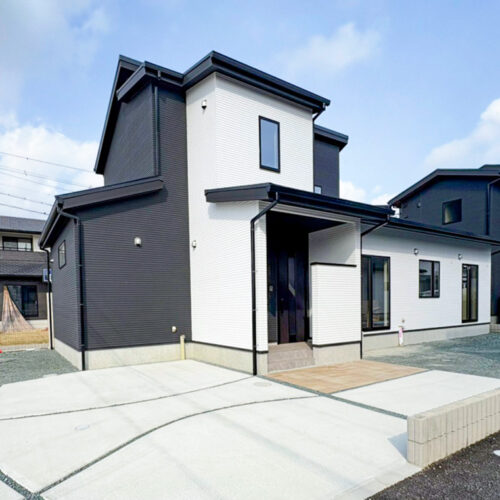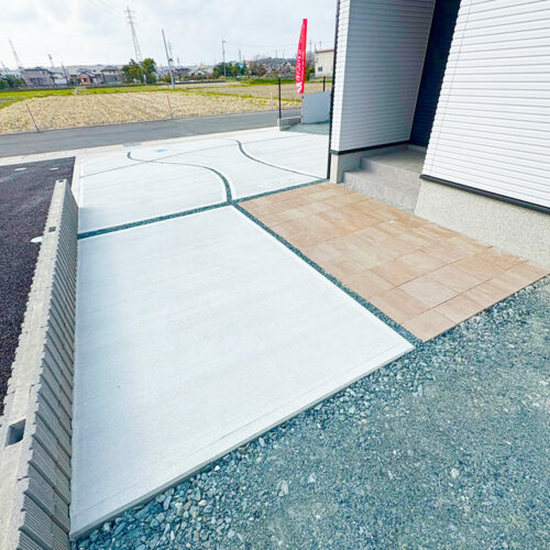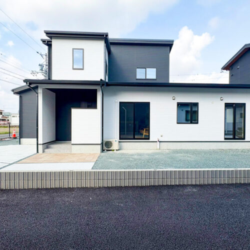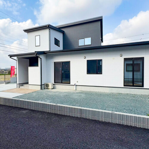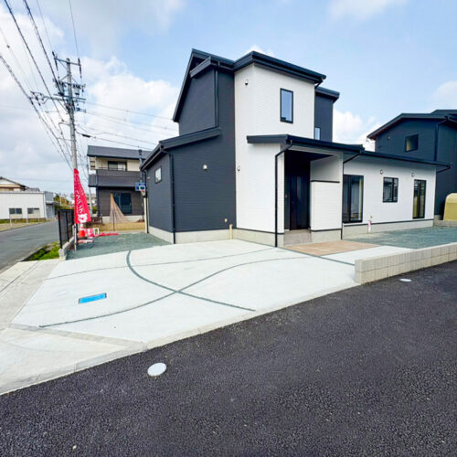 \外構が完成しました!/リビング18帖以上の4LDK!部屋ごとに必要な収納が充実しており、1階のベッドルームで平屋風の暮らしができる2階建ての家。駐車3台に庭付き物件が魅力的なおうちです。
