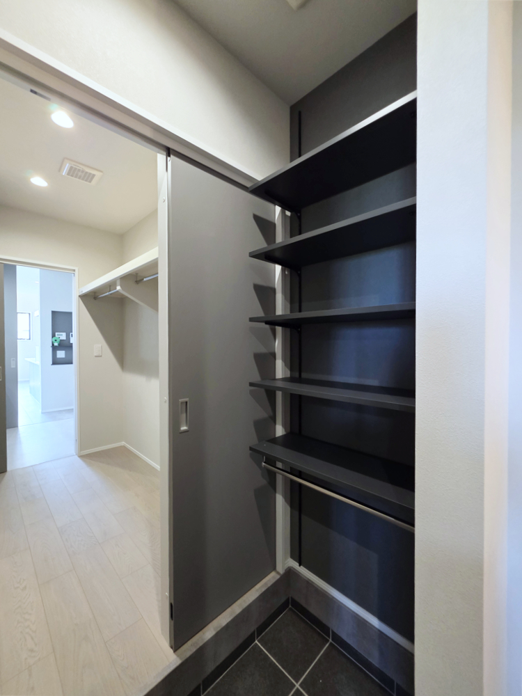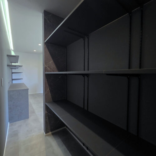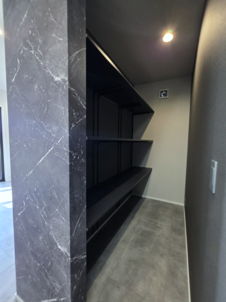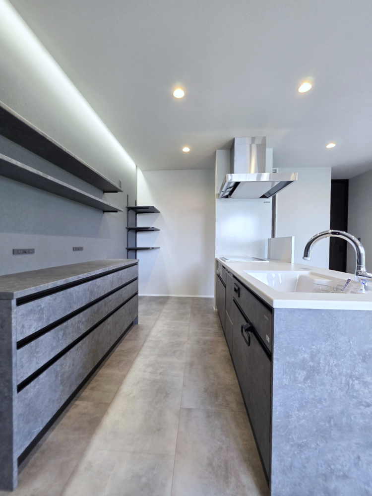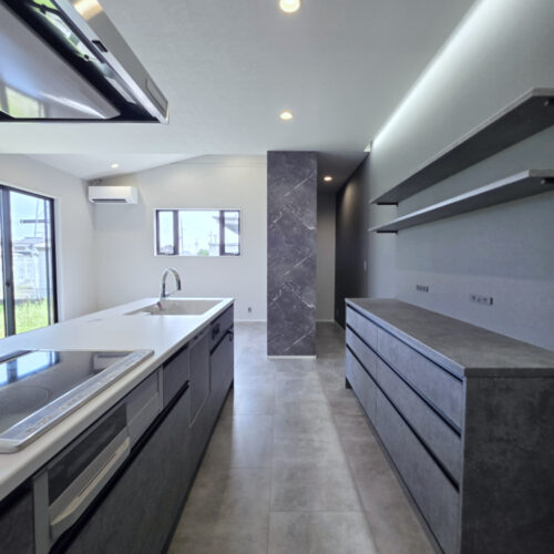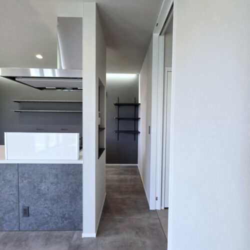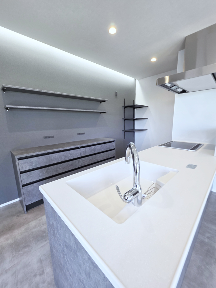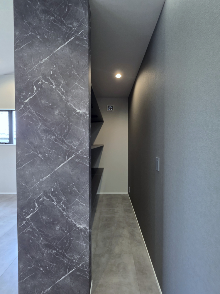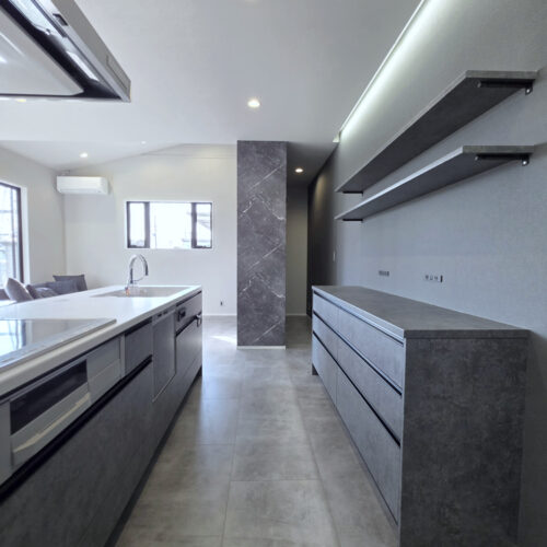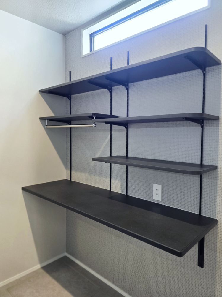 普段は見えないけど、必要な時はすぐに出せる!そんなマルチストレージ。片付けも映えも意識できる!気持ちいいキッチンになりそうな背面収納空間!冷凍庫を置けたり、スイッチ類をニッチに集約させたり、コンセントの場所などにも注目してほしいです。