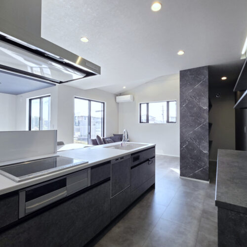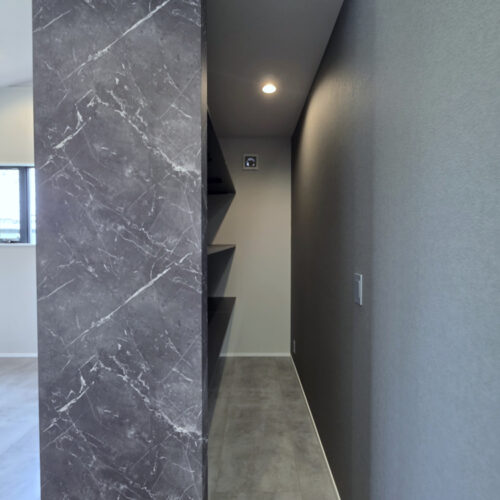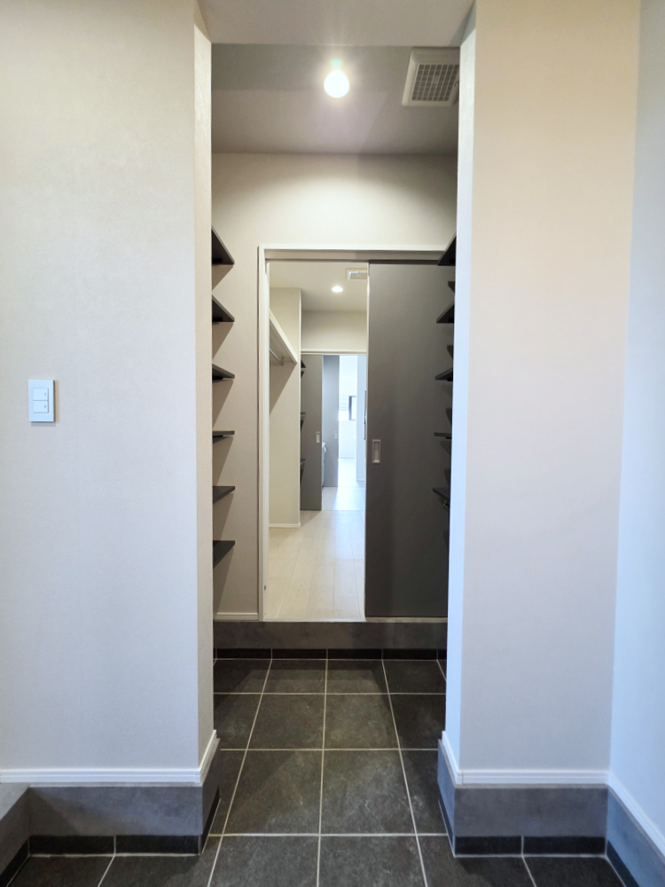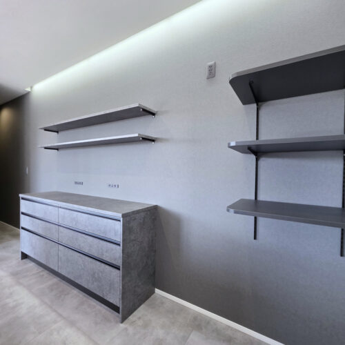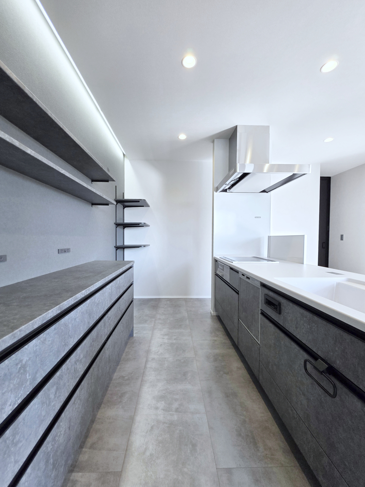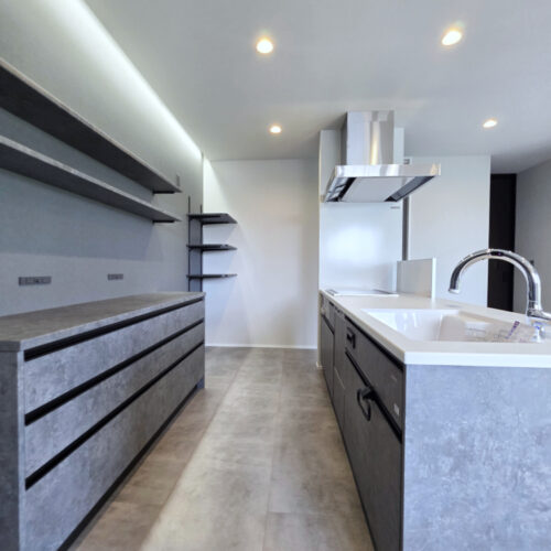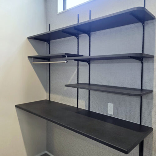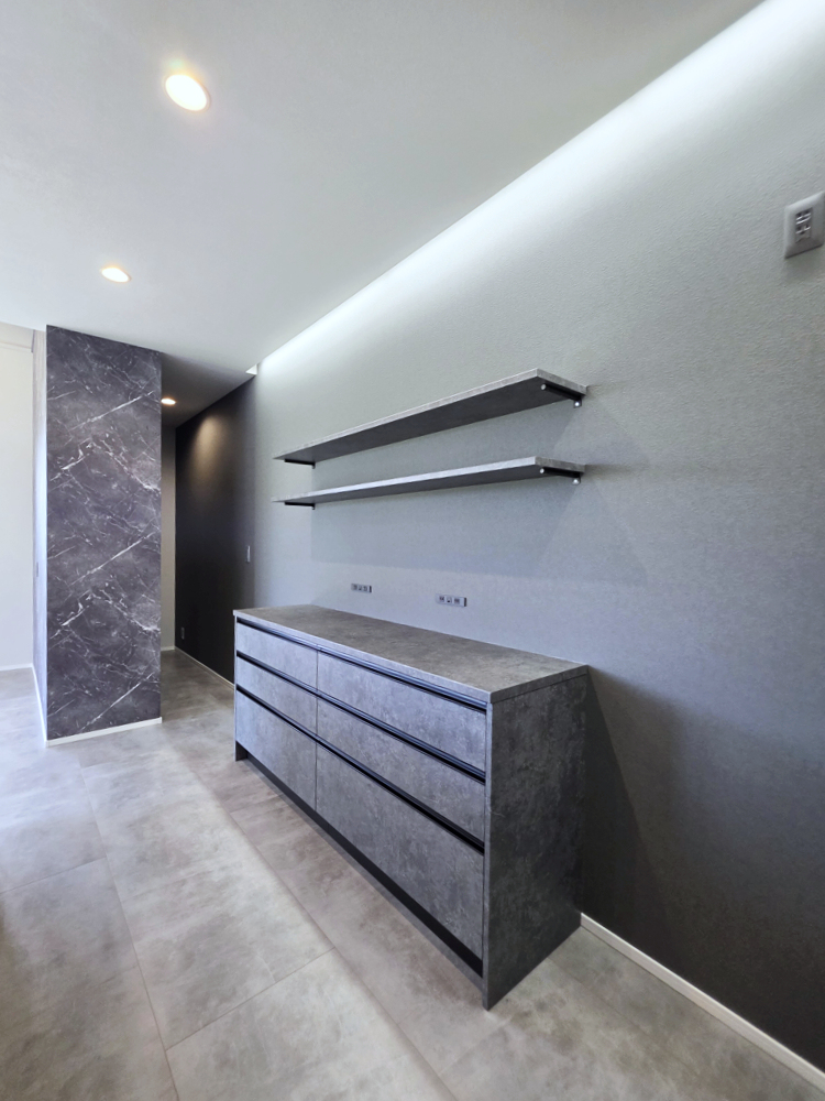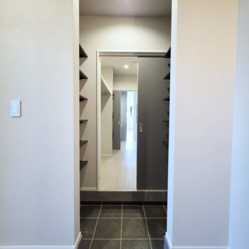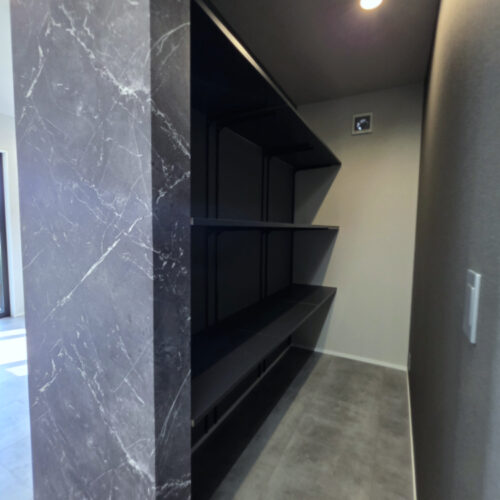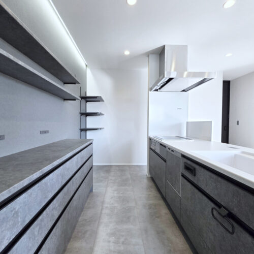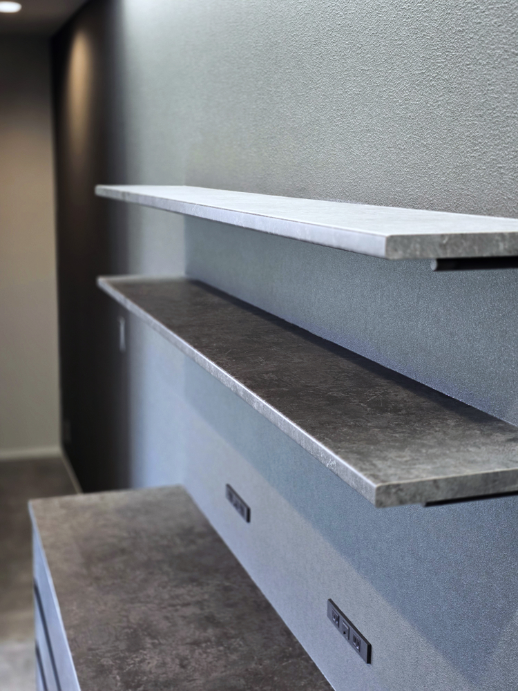 普段は見えないけど、必要な時はすぐに出せる!そんなマルチストレージ。片付けも映えも意識できる!気持ちいいキッチンになりそうな背面収納空間!冷凍庫を置けたり、スイッチ類をニッチに集約させたり、コンセントの場所などにも注目してほしいです。